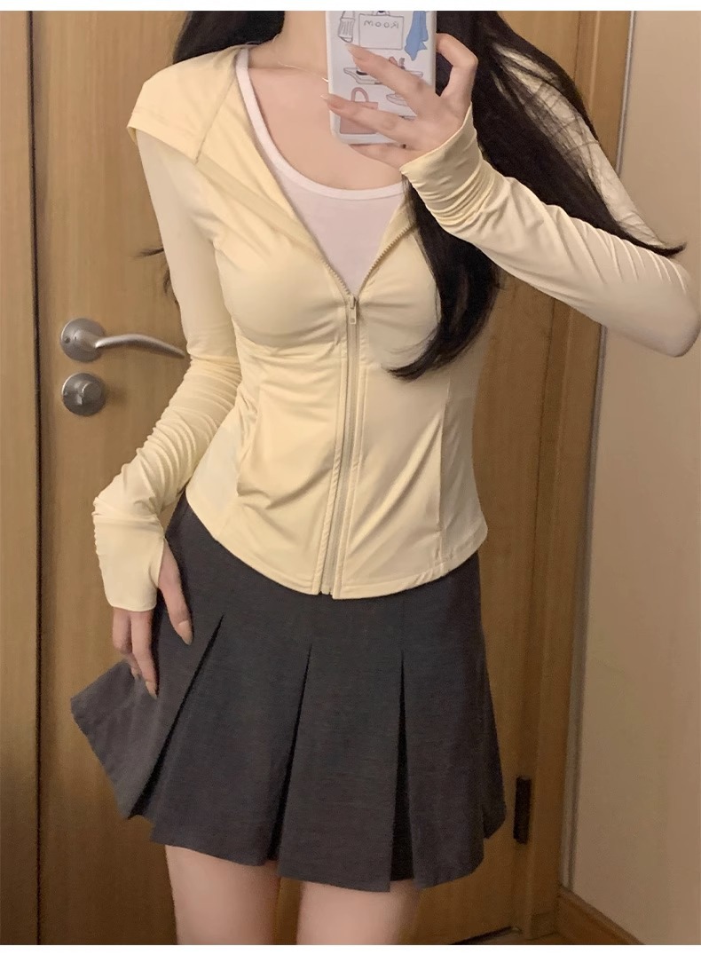 商品属性 [上市年份/季节] 2024年春季 [主要下游销售地区1] 东南亚 [主要下游销售地区2] 欧美 [主面料成分] 粘胶纤维 [主面料成分含量] 50%(含)-70%(不含) [是否跨境货源] 是 [款式] 开衫 [流行元素] 口袋 [版型] 修身型 [衣长] 普通款(50cm<衣长≤65cm) [袖型] 常规袖 [袖长] 长袖 [跨境风格类型] 甜美清新 [面料名称] 粘胶纤维 [领型] 连帽 [风格] 通勤风 [风格类型] 气质通勤