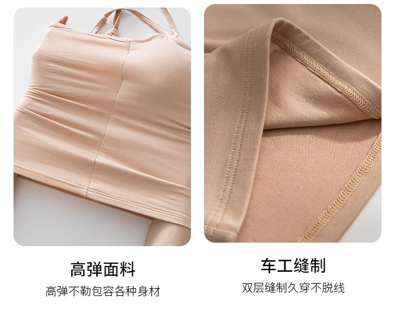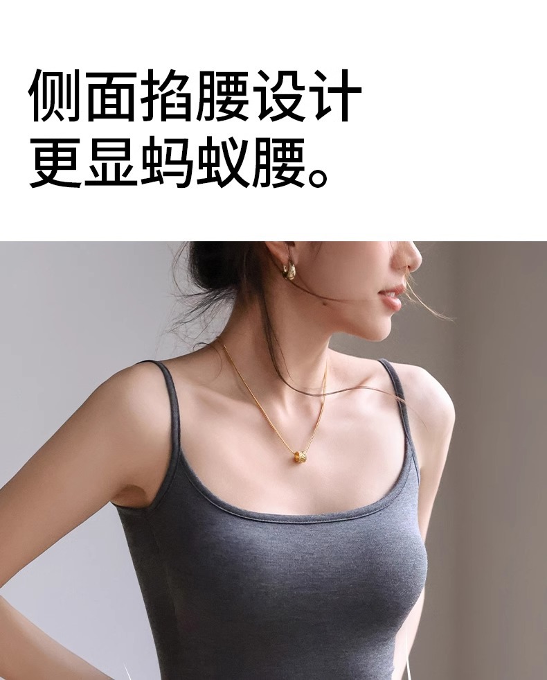 商品属性 [上市年份/季节] 2025年春季 [主面料成分] 粘纤 [主面料成分2] 氨纶 [主面料成分2含量] 30%以下 [主面料成分含量] 90%(含)-95%(不含) [图案] 纯色 [弹力] 高弹 [是否跨境货源] 否 [款式] 吊带款 [流行元素] 露背 [版型] 修身型 [肩带样式] 双根式 [衣长] 普通款(50cm<衣长≤65cm) [面料名称] 粘纤 [风格] 纯欲风 [风格类型] 私服名媛