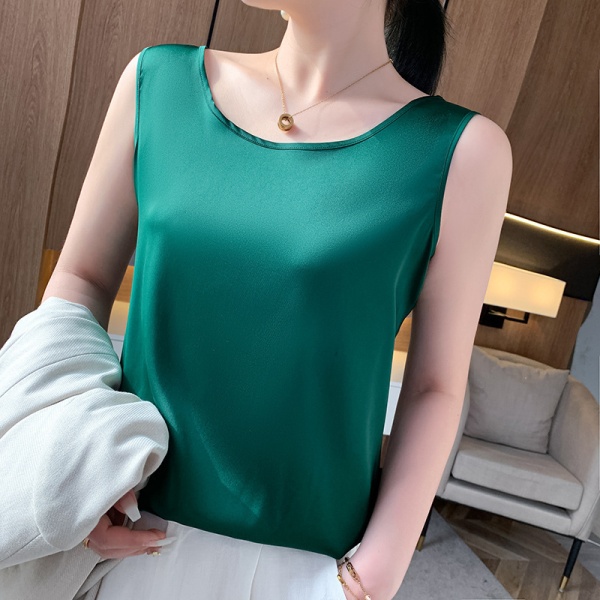 商品属性 [上市年份/季节] 2025年春季 [主面料成分] 蚕丝 [主面料成分含量] 30%及以下 [图案] 纯色 [弹力] 微弹 [是否跨境货源] 否 [款式] 套头 [流行元素] 亮片 [版型] 宽松型 [肩带样式] 不可拆卸 [衣长] 普通款(50cm<衣长≤65cm) [面料名称] 缎面 [风格] 优雅风 [风格类型] 气质通勤