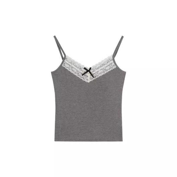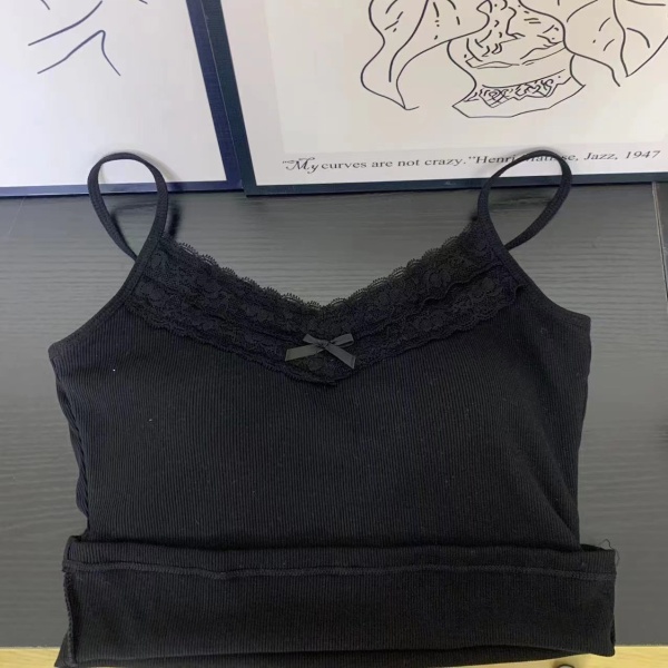 商品属性 [上市年份/季节] 2024年春季 [主面料成分] 其它 [主面料成分2] 氨纶 [主面料成分2含量] 30%以下 [主面料成分含量] 30%(含)-50%(不含) [图案] 蝴蝶结 [弹力] 微弹 [是否跨境货源] 否 [款式] 吊带款 [流行元素] 蕾丝 [版型] 修身型 [肩带样式] 不可拆卸 [衣长] 短款(40cm<衣长≤50cm) [面料名称] 人棉 [风格] 公主风 [风格类型] 清新甜美