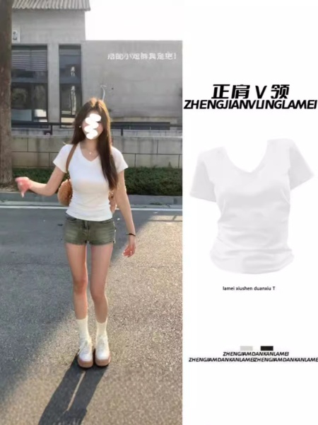 商品属性 [上市年份/季节] 2022年冬季 [主面料成分] 涤纶(聚酯纤维) [主面料成分2] 氨纶 [主面料成分2含量] 30%以下 [主面料成分含量] 95%及以上 [图案] 纯色 [工艺] V领 [是否跨境货源] 否 [款式] V领正肩 [流行元素] 爆款 [版型] 修身型 [衣长] 短款(40cm<衣长≤50cm) [袖型] 常规袖 [袖长] 短袖 [面料名称] 涤纶 [领型] V领 [风格] 机车风 [风格类型] 街头潮人