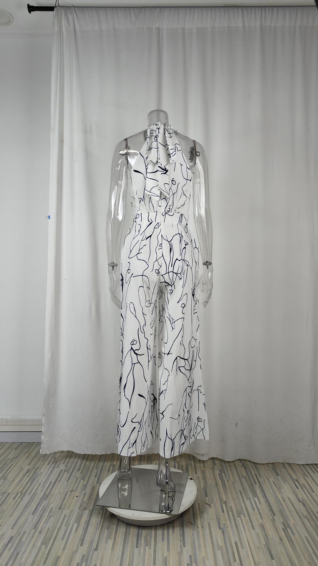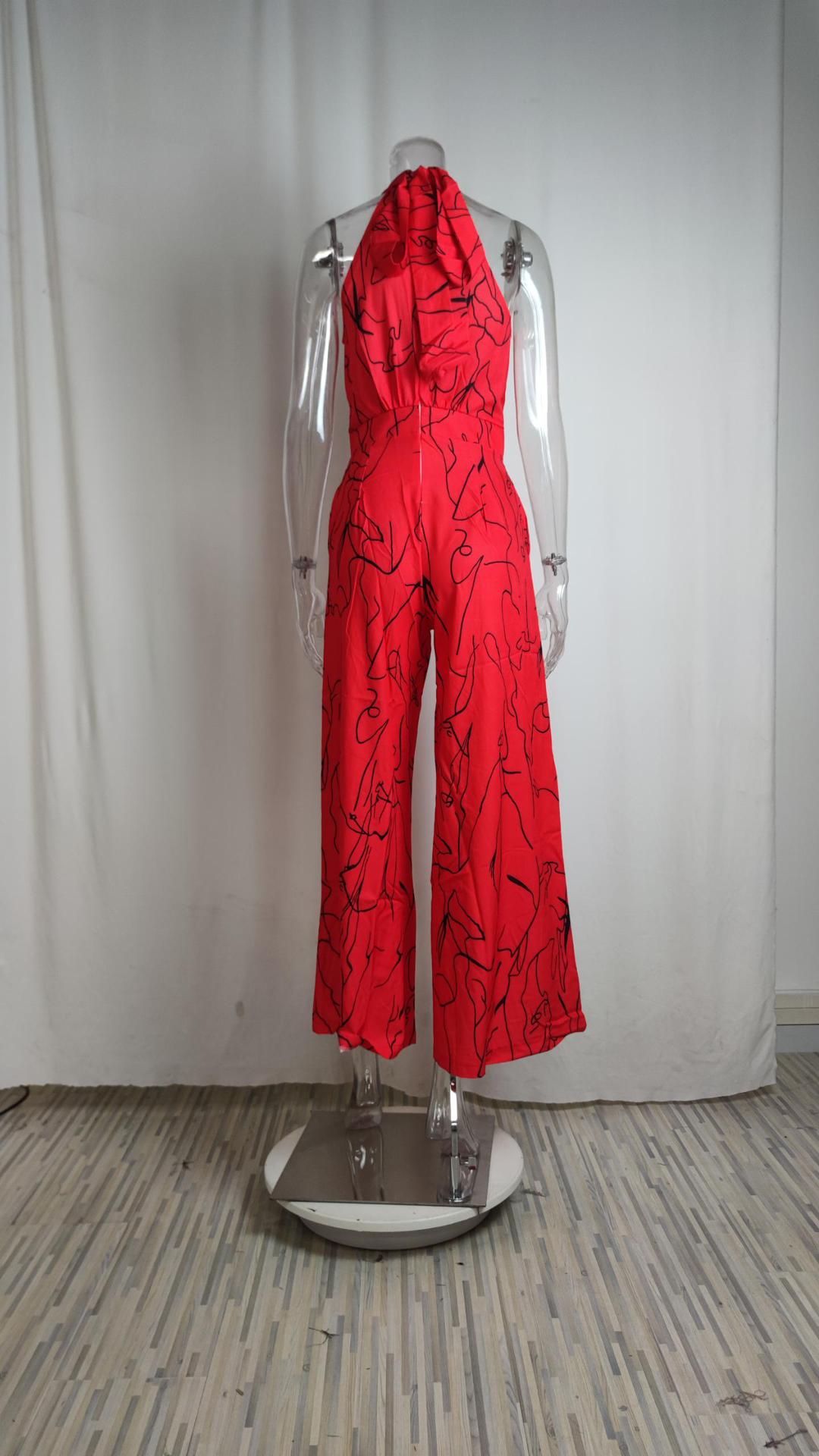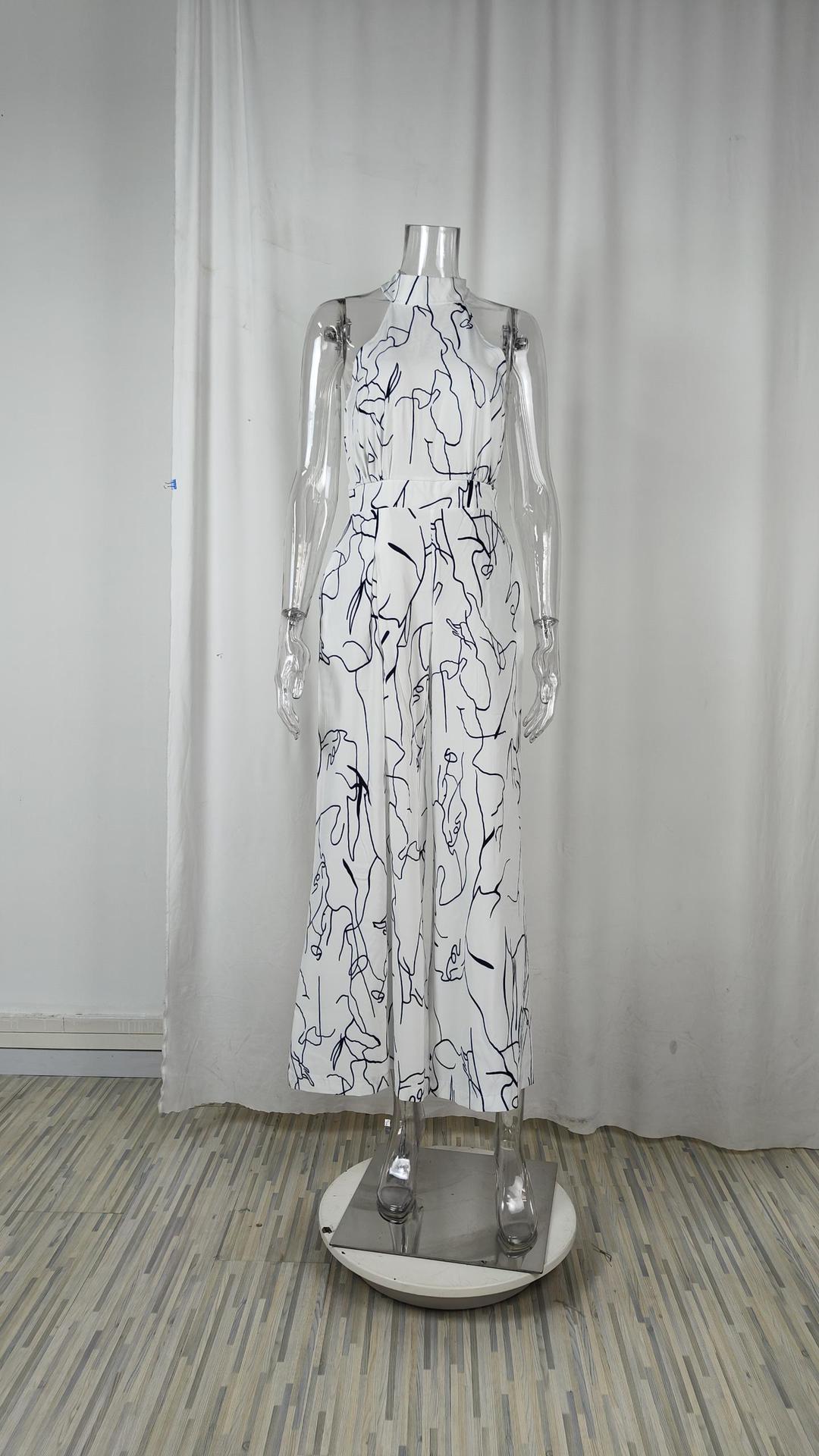商品属性 [上市年份/季节] 2025年春季 [主要下游销售地区1] 欧美 [主要下游销售地区2] 中东 [主面料成分] 涤纶(聚酯纤维) [主面料成分2] 涤纶(聚酯纤维) [主面料成分2含量] 30%(含)-50%(不含) [主面料成分含量] 95%及以上 [厚薄] 薄 [工艺] 印花 [弹力] 微弹 [是否跨境货源] 是 [款式] 连体裤 [流行元素] 系带 [腰型] 高腰 [袖型] 无袖 [袖长] 无袖 [裤型] 大喇叭型 [裤长] 长裤 [跨境风格类型] 气质优雅 [面料名称] 涤纶 [风格] 通勤风 [风格类型] 气质通勤