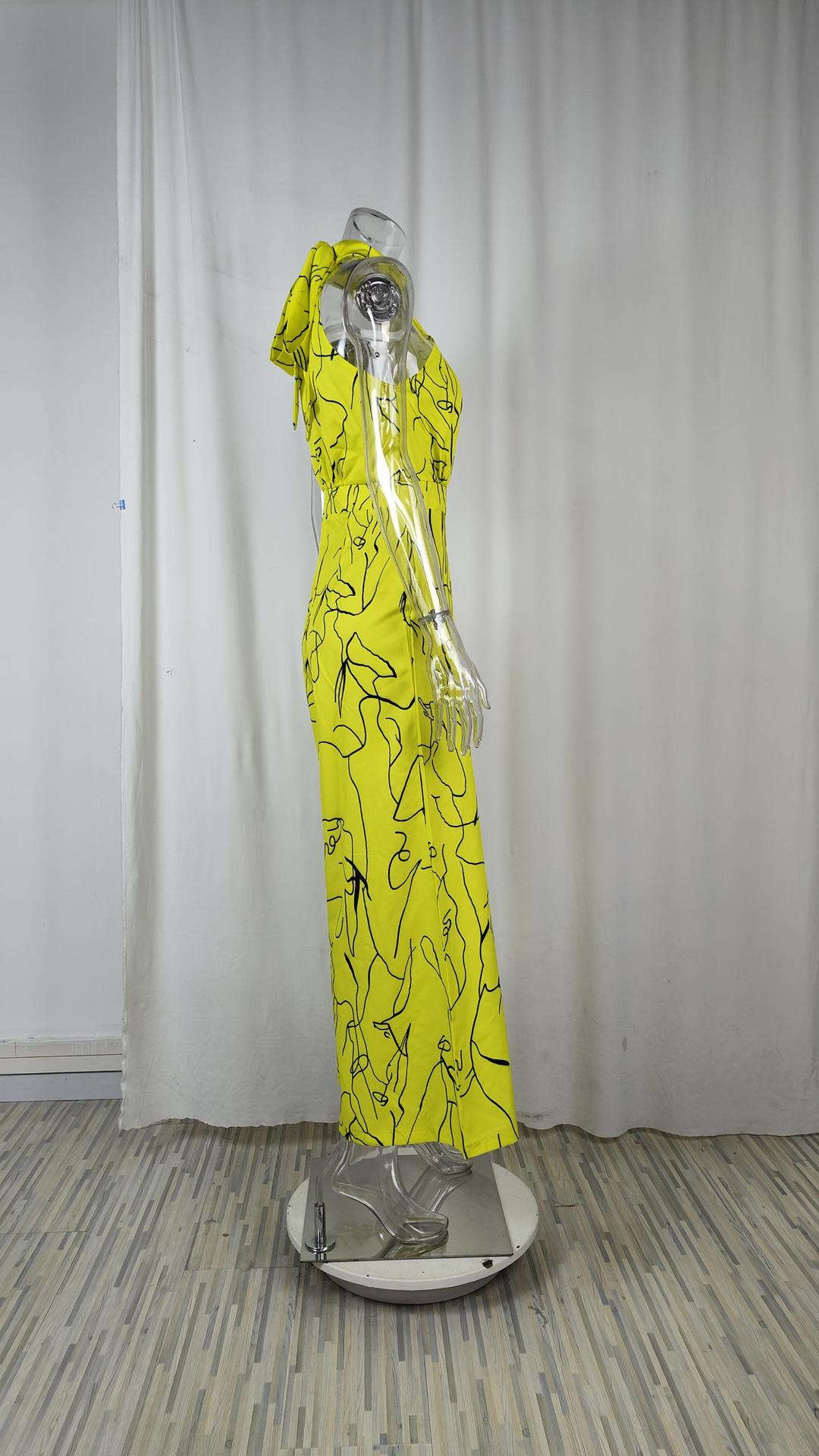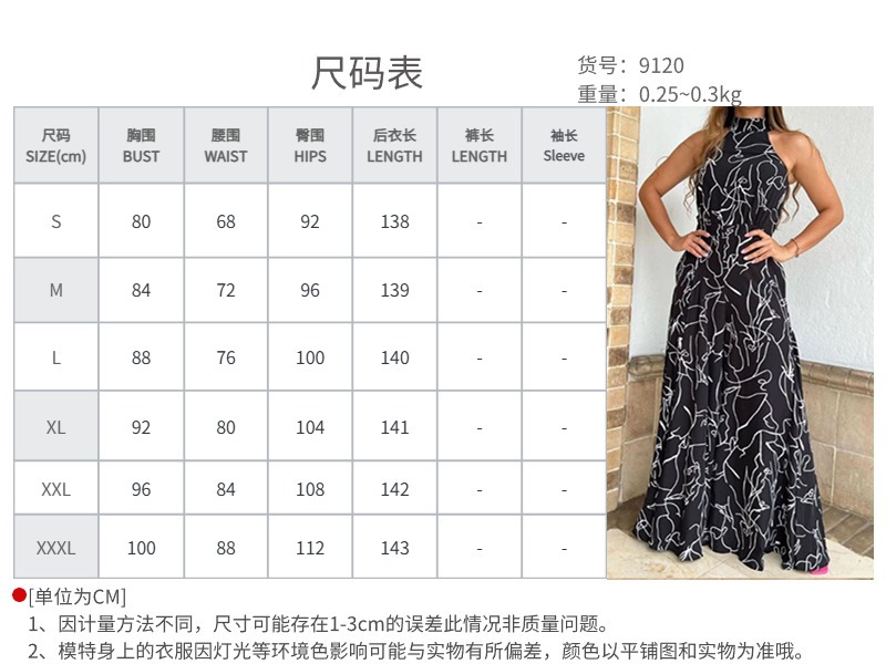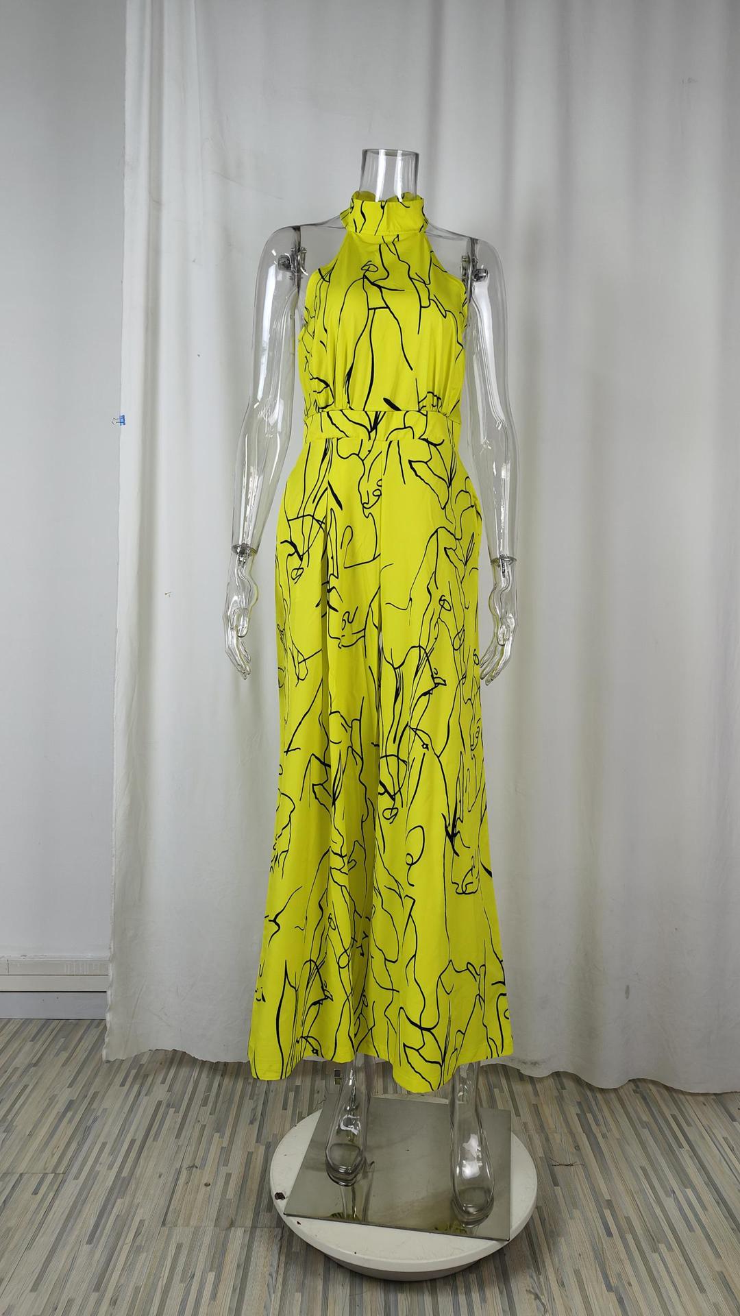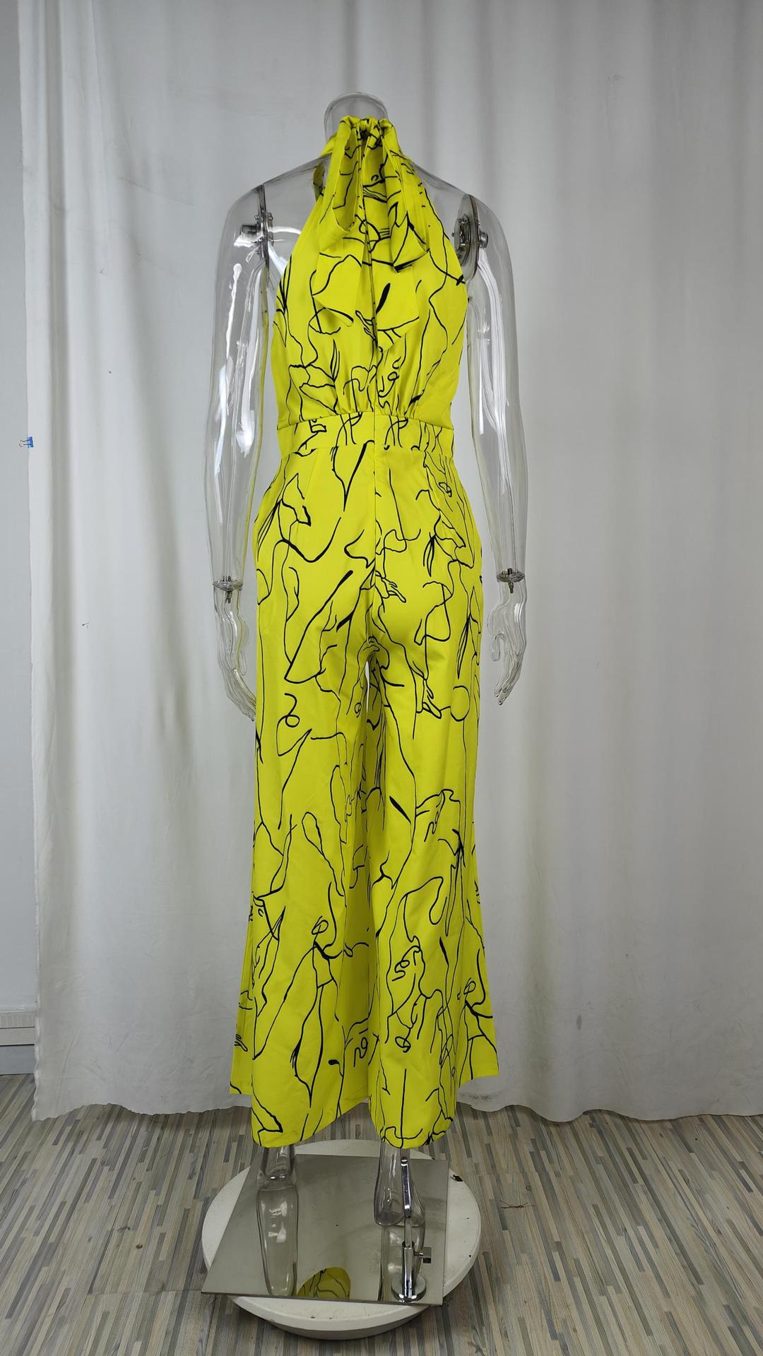 商品属性 [上市年份/季节] 2025年春季 [主要下游销售地区1] 欧美 [主要下游销售地区2] 中东 [主面料成分] 涤纶(聚酯纤维) [主面料成分2] 涤纶(聚酯纤维) [主面料成分2含量] 30%(含)-50%(不含) [主面料成分含量] 95%及以上 [厚薄] 薄 [工艺] 印花 [弹力] 微弹 [是否跨境货源] 是 [款式] 连体裤 [流行元素] 系带 [腰型] 高腰 [袖型] 无袖 [袖长] 无袖 [裤型] 大喇叭型 [裤长] 长裤 [跨境风格类型] 气质优雅 [面料名称] 涤纶 [风格] 通勤风 [风格类型] 气质通勤