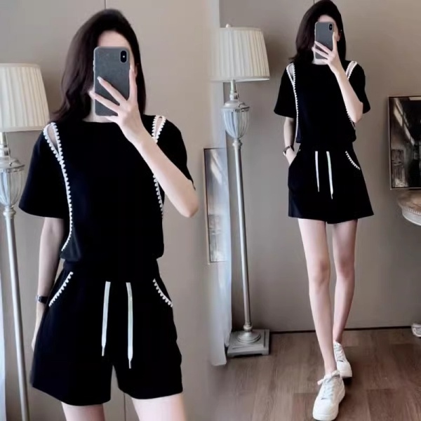 商品属性 [上市年份/季节] 2024年夏季 [主面料成分] 涤纶(聚酯纤维) [主面料成分含量] 90%(含)-95%(不含) [图案] 其他 [套装款式] 裤套装 [工艺] 镂空 [是否跨境货源] 否 [流行元素] 其他 [袖型] 常规袖 [袖长] 三分袖 [裤长] 五分裤 [面料名称] 涤纶 [风格] 通勤风 [风格类型] 气质通勤