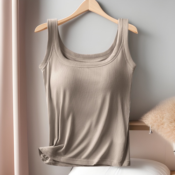 商品属性 [上市年份/季节] 2024年春季 [主面料成分] 粘胶纤维 [主面料成分含量] 90%(含)-95%(不含) [图案] 纯色螺纹 [弹力] 中弹 [是否跨境货源] 否 [款式] 套头 [流行元素] 纯色螺纹 [版型] 修身型 [肩带样式] 不可拆卸 [衣长] 普通款(50cm<衣长≤65cm) [面料名称] 粘胶纤维 [风格] 简约风 [风格类型] 日韩休闲