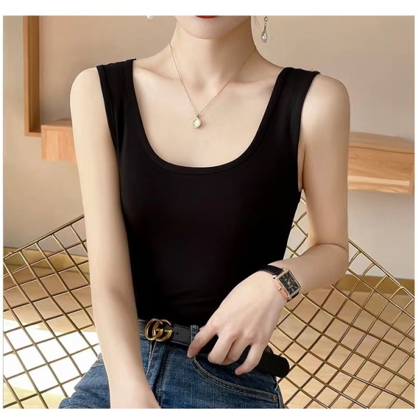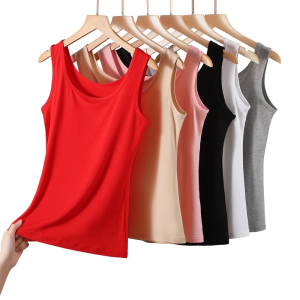 商品属性 [上市年份/季节] 2022年春季 [主面料成分] 粘纤 [主面料成分2] 莫代尔纤维 [主面料成分2含量] 30%及以下 [主面料成分含量] 90%(不含)-95%(含) [主面料成分的含量] 95 [图案] 纯色 [弹力] 高弹 [是否支持代工] 支持 [是否无缝] 否 [是否跨境货源] 否 [款式] 工字型 [流行元素] 3D/立体图案 [版型] 修身型 [肩带样式] 不可拆卸,双根式 [衣长] 普通款(50cm<衣长≤65cm) [面料名称] 莫代尔 [风格] 简约风 [风格类型] 日韩休闲