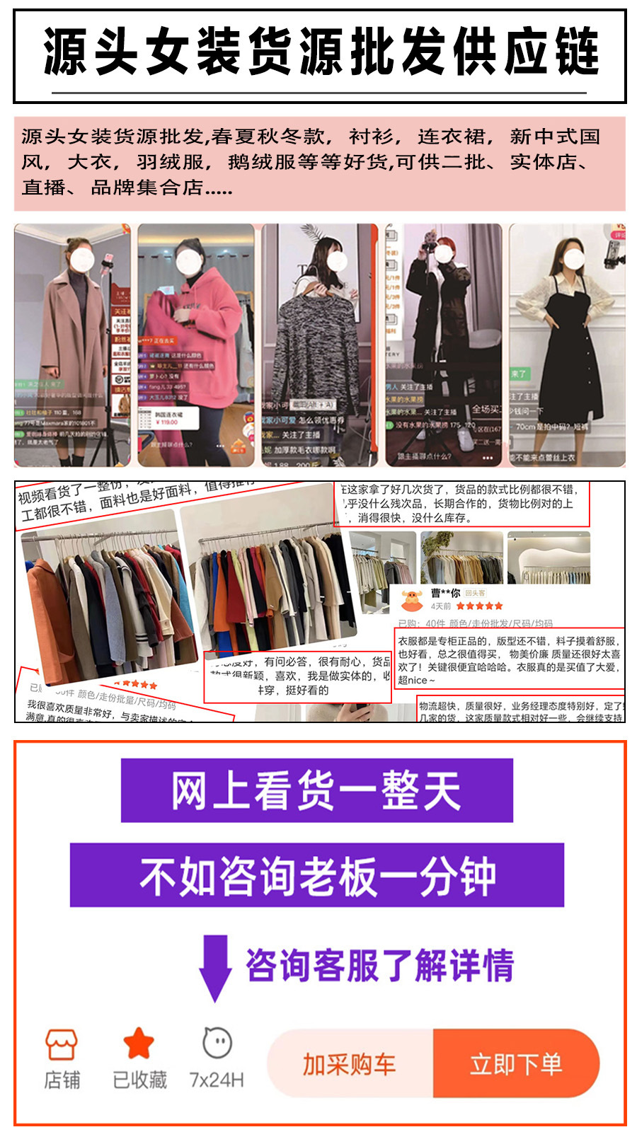 实体一手货源批发,有春夏秋冬款,衬衫,连衣裙,新中式国风,大衣,羽绒服,鹅绒服等等好货。