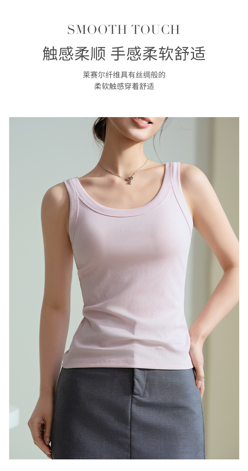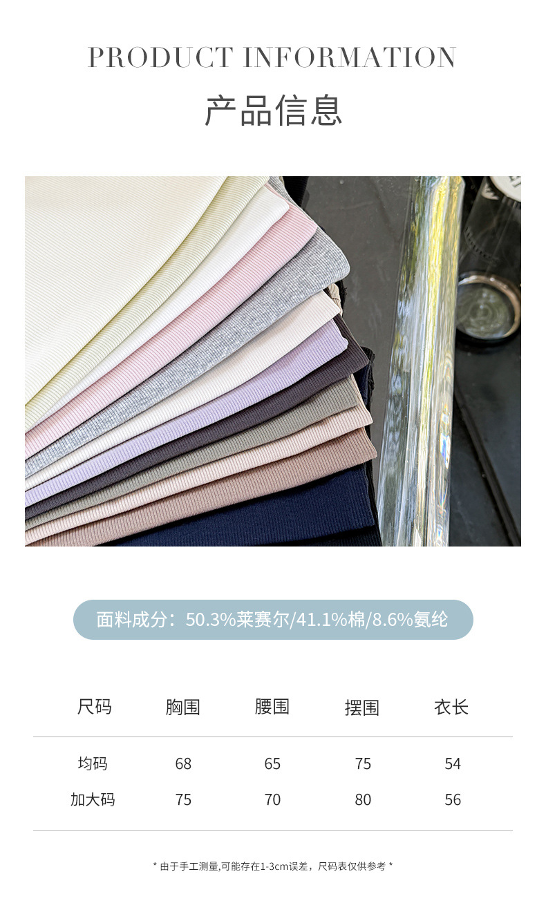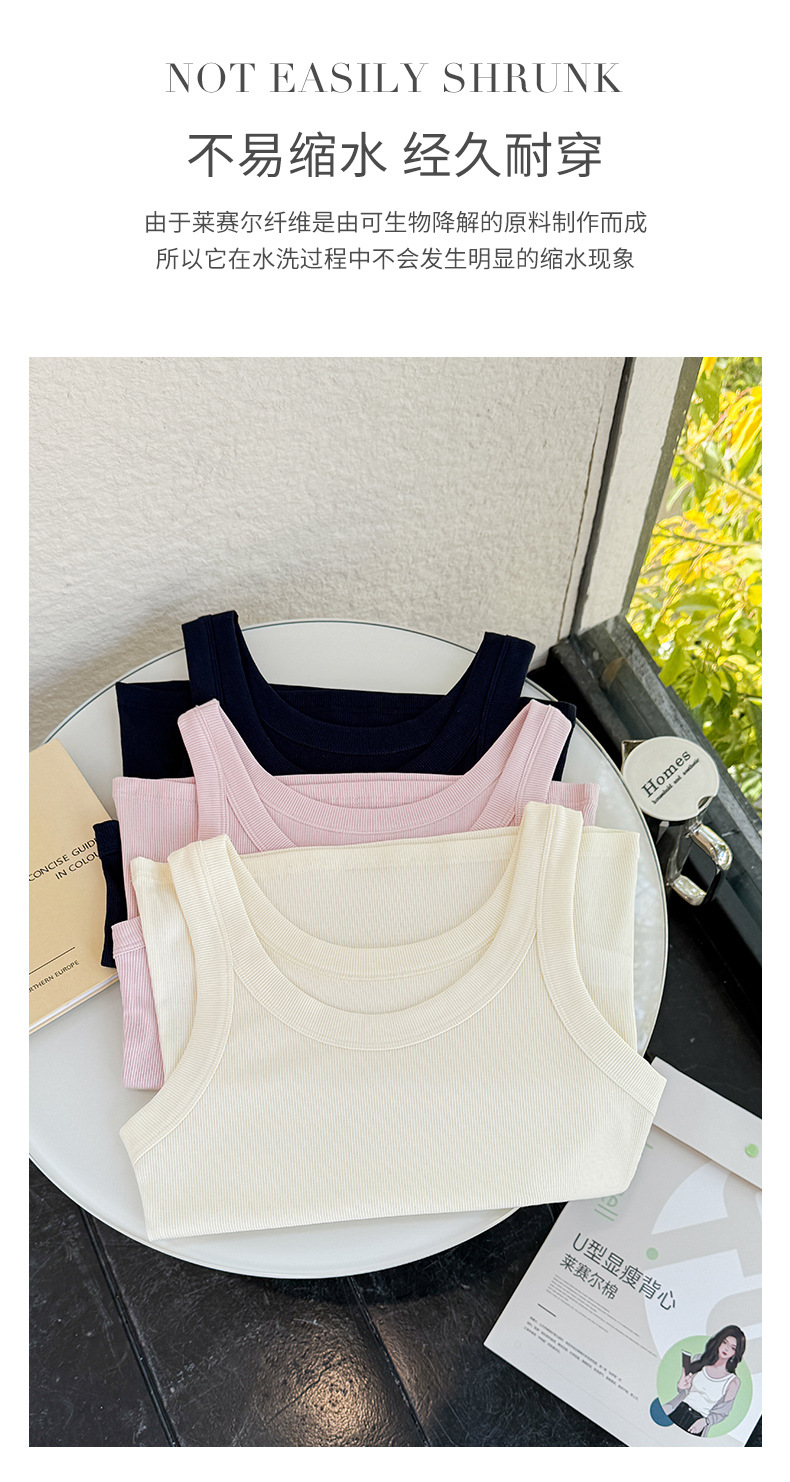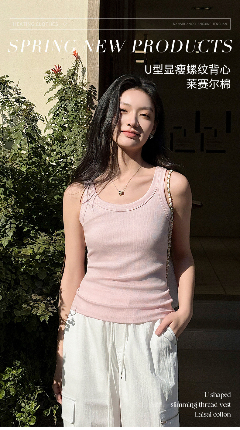 商品属性 [上市年份/季节] 2025年春季 [主面料成分] 天丝(莱赛尔纤维) [主面料成分2] 棉 [主面料成分2含量] 30%(含)-50%(不含) [主面料成分含量] 50%(含)-70%(不含) [图案] 螺纹 [弹力] 高弹 [是否跨境货源] 否 [款式] 肩带型 [流行元素] 螺纹 [版型] 修身型 [肩带样式] 双根式 [衣长] 普通款(50cm<衣长≤65cm) [面料名称] 莱赛尔 [风格] 休闲风 [风格类型] 日韩休闲