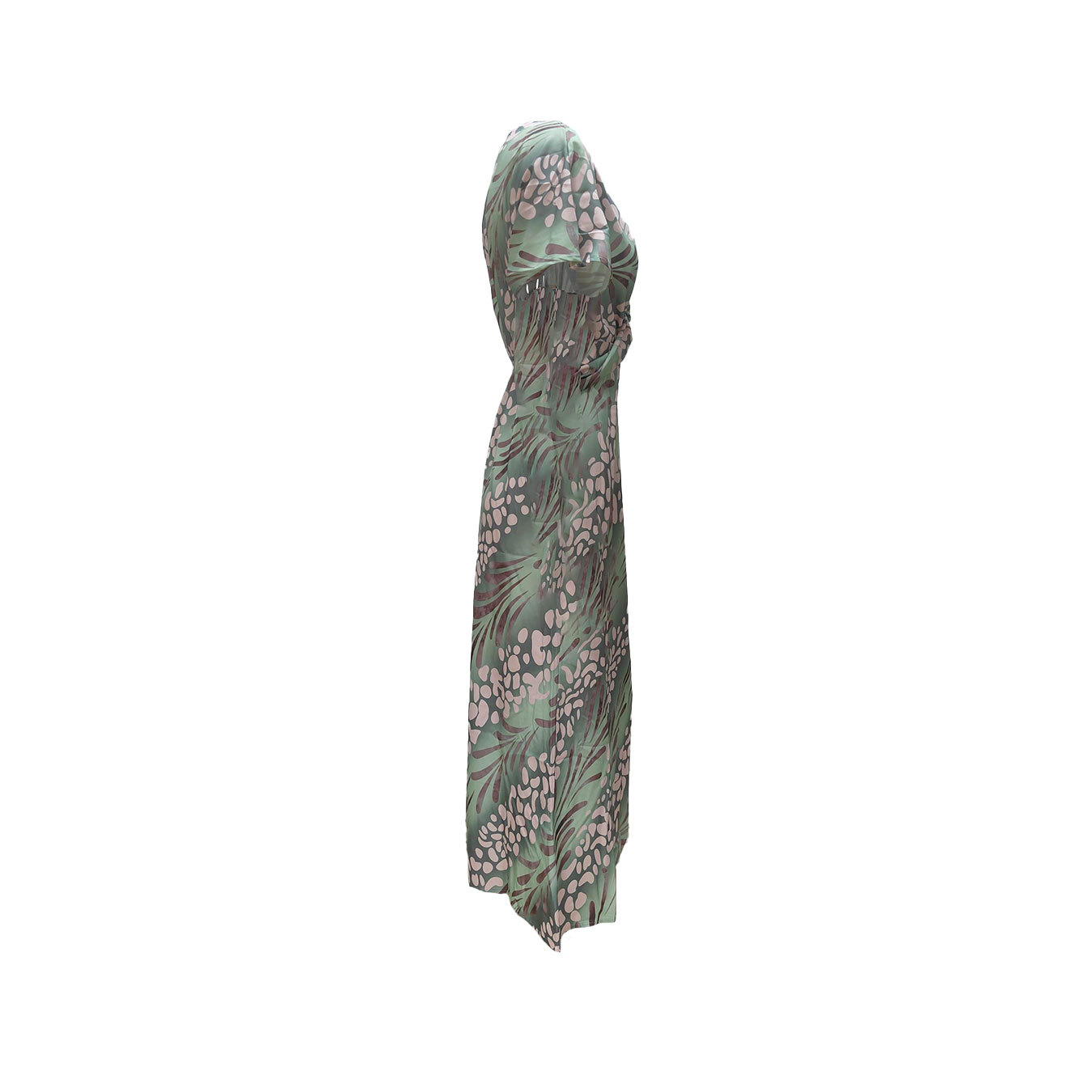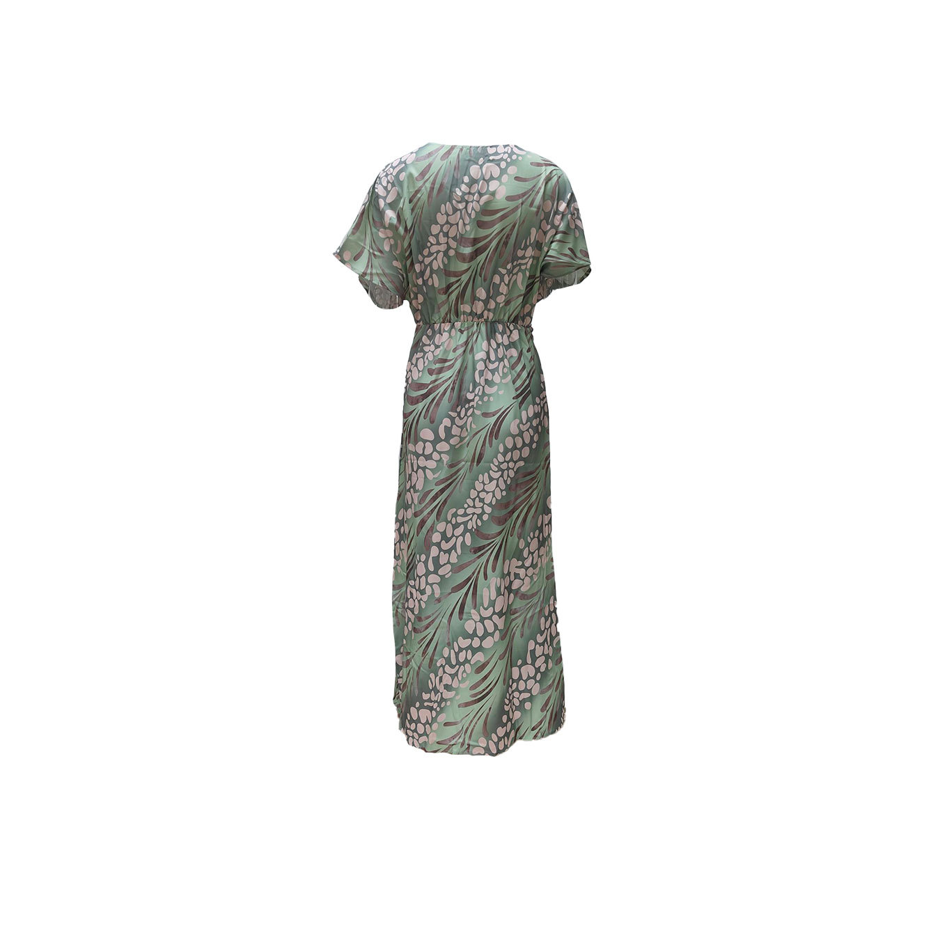 商品属性 [上市年份/季节] 2025年春季 [主要下游销售地区1] 欧美 [主要下游销售地区2] 欧美 [主面料成分] 涤纶(聚酯纤维) [主面料成分含量] 95%及以上 [产地] 广州 [图案] 印花 [工艺] 印花 [是否跨境货源] 是 [款式] 基本款 [流行元素] 印花 [组合形式] 单件 [腰型] 中腰 [袖型] 常规袖 [袖长] 短袖 [裙型] 一步裙 [裙长] 中长裙 [跨境风格类型] 气质优雅 [门襟] 套头 [面料名称] 涤纶 [领型] V字领 [风格] 优雅风 [风格类型] 气质通勤