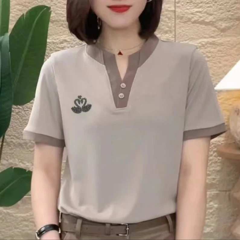 商品属性 [上市年份/季节] 2025年春季 [主面料成分] 涤纶(聚酯纤维) [主面料成分2] 涤纶(聚酯纤维) [主面料成分2含量] 30%(含)-50%(不含) [主面料成分含量] 90%(含)-95%(不含) [图案] 拼色,纯色 [工艺] 刺绣/绣花 [是否跨境货源] 否 [款式] 套头 [流行元素] 拼接 [版型] 常规 [衣长] 普通款(50cm<衣长≤65cm) [袖型] 常规 [袖长] 短袖 [面料名称] 涤纶 [领型] 圆领 [风格] 通勤风 [风格类型] 气质通勤
