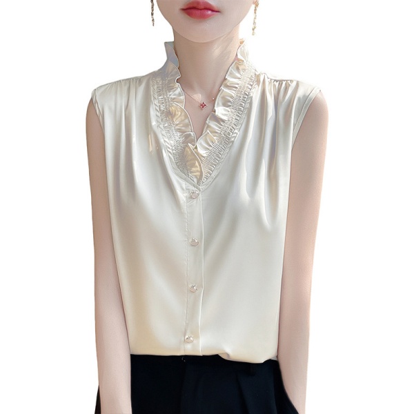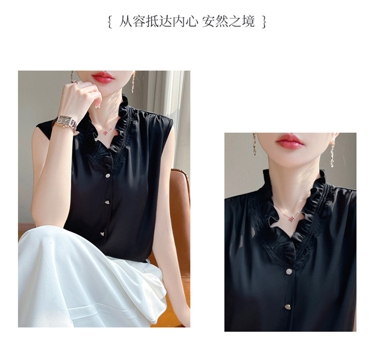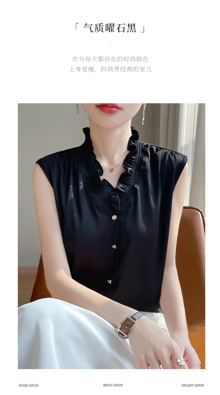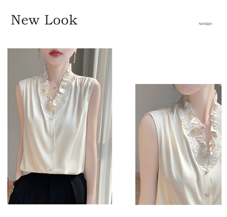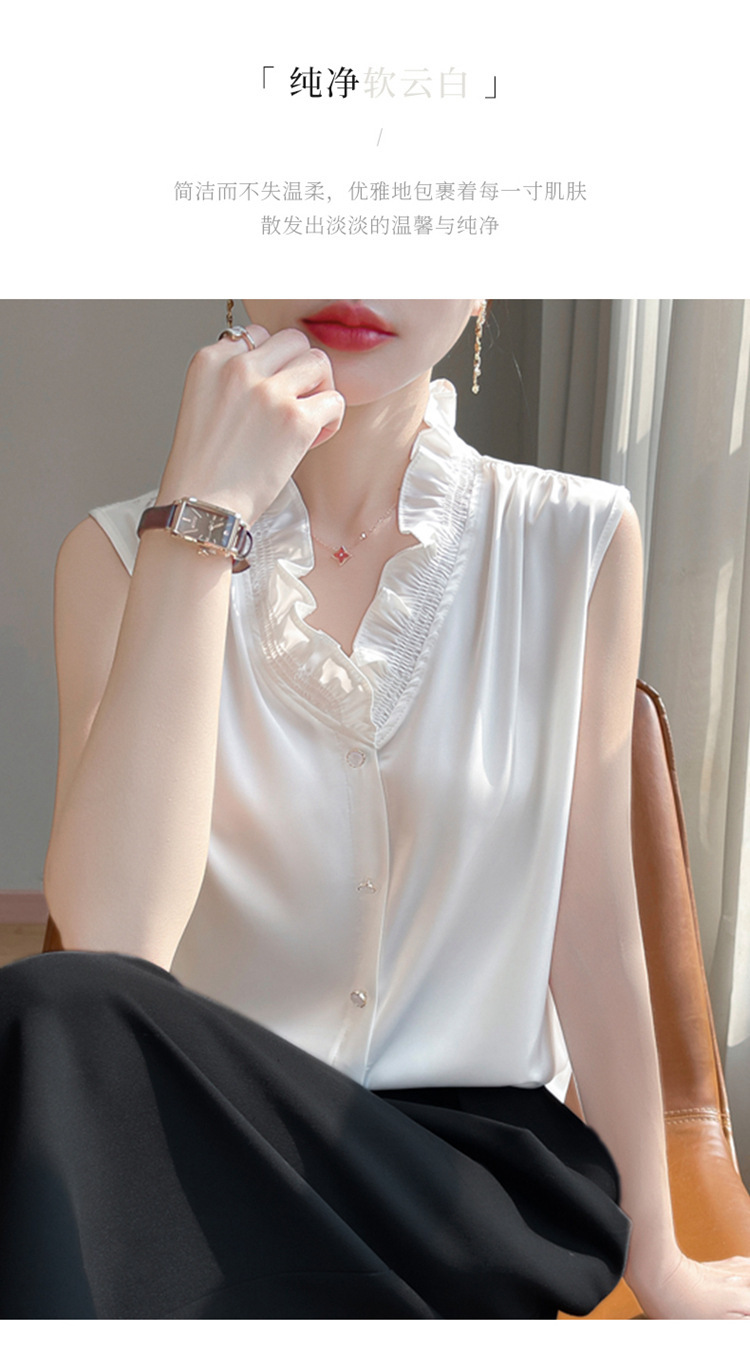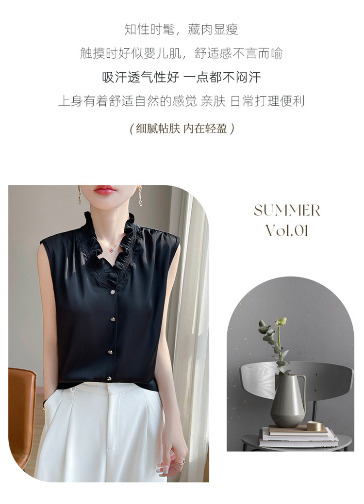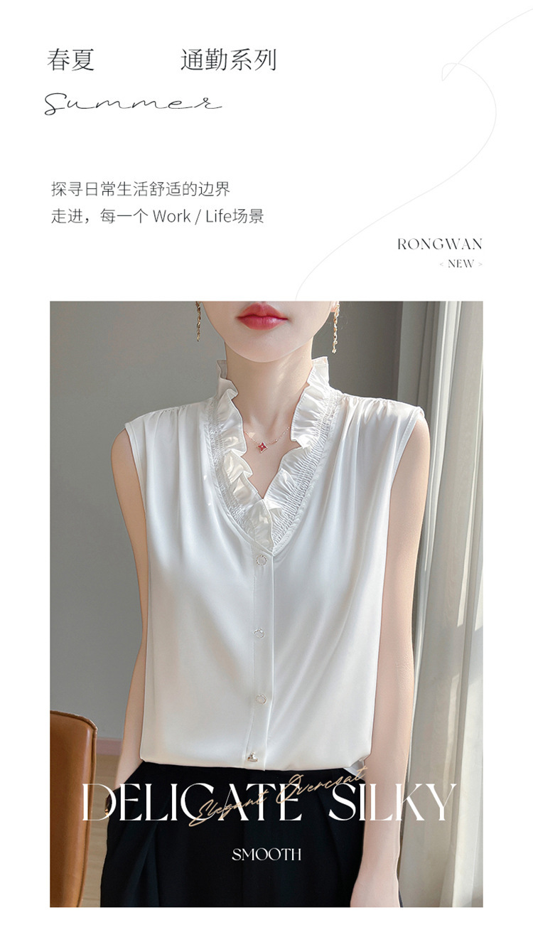 商品属性 [上市年份/季节] 2025夏季 [主要下游销售地区1] 欧美 [主面料成分] 聚酯纤维 [主面料成分含量] 90%(含)-95%(不含) [是否跨境货源] 是 [袖型] 常规袖 [袖长] 无袖 [跨境风格类型] 舒适休闲 [面料名称] 聚酯纤维 [领型] V字领 [风格] 纯欲风 [风格类型] 私服名媛