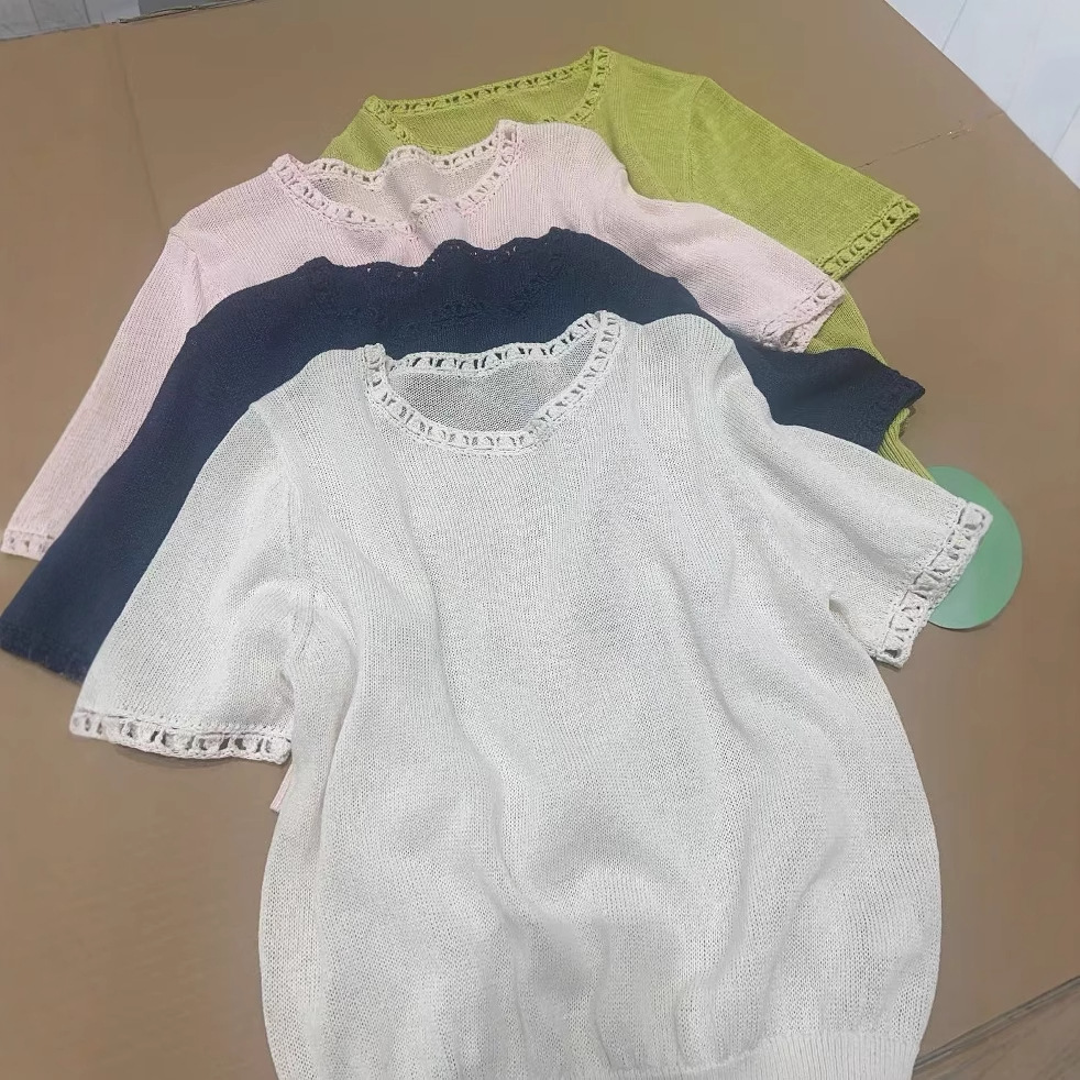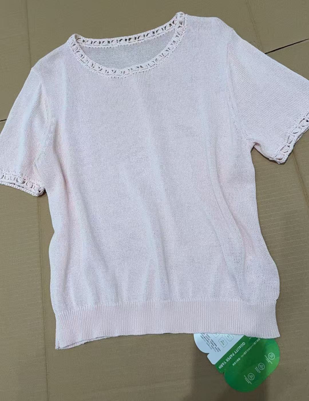 商品属性 [上市年份/季节] 2025年春季 [主面料成分] 有机棉 [主面料成分含量] 30%(含)-50%(不含) [厚薄] 薄 [图案] 咨询 [工艺] 手工钩花 [是否跨境货源] 否 [款式] 套头 [流行元素] 勾花 [版型] 常规 [穿着方式] 套头 [组合形式] 单件 [衣长] 普通款(50cm<衣长≤65cm) [袖型] 常规袖 [袖长] 三分袖 [门襟] 套头 [面料名称] 棉 [领型] 圆领 [风格] 休闲风 [风格类型] 日韩休闲