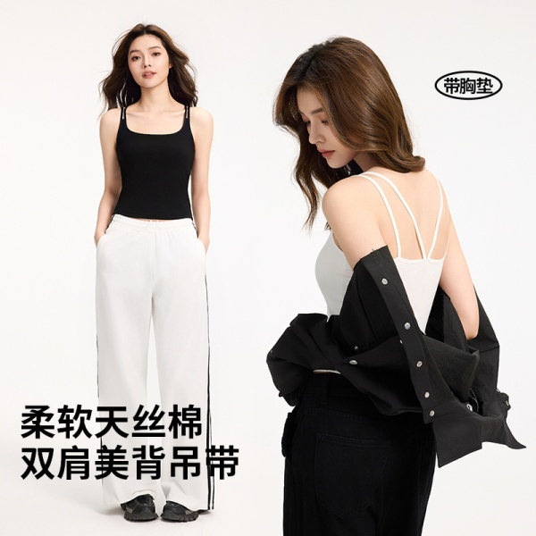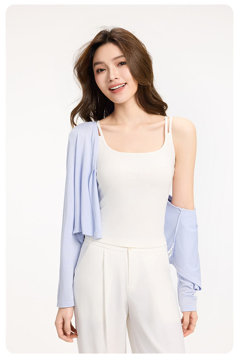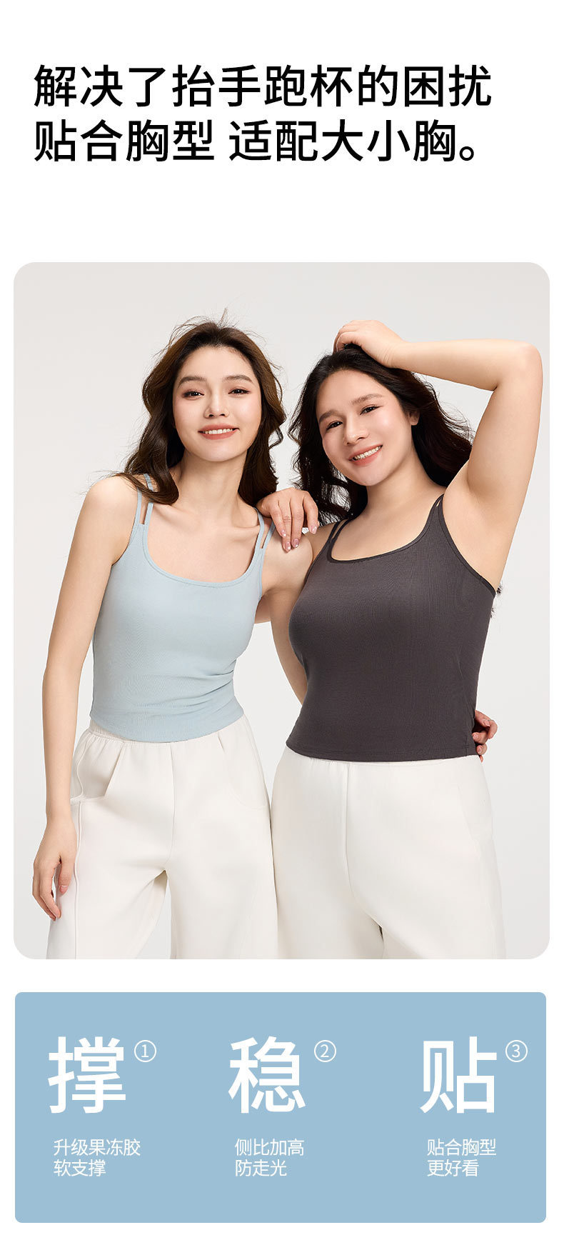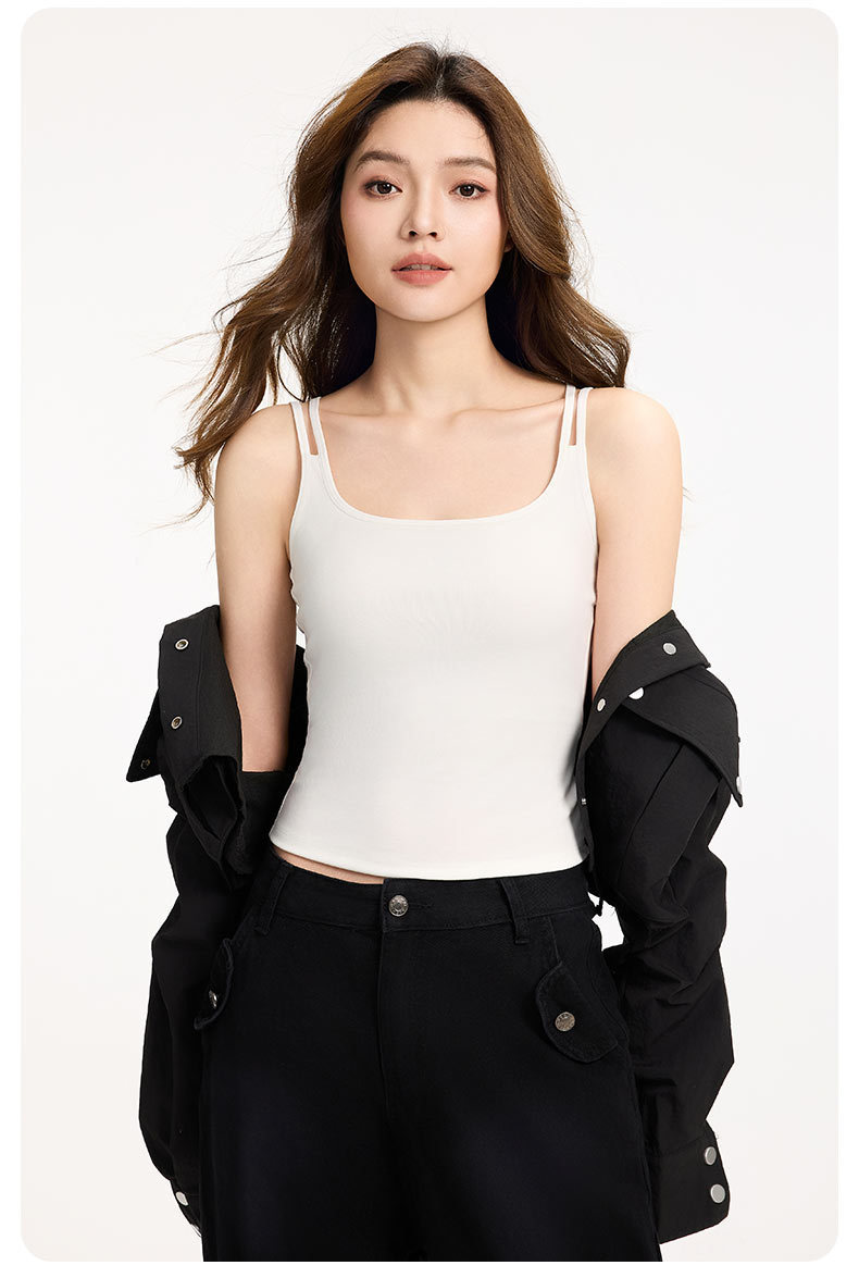 商品属性 [上市年份/季节] 2025年春季 [主面料成分] 天丝(莱赛尔纤维) [主面料成分2] 棉 [主面料成分2含量] 30%(含)-50%(不含) [主面料成分含量] 30%(含)-50%(不含) [图案] 纯色 [弹力] 高弹 [是否跨境货源] 否 [款式] 吊带款 [流行元素] 纯色 [版型] 修身型 [肩带样式] 不可拆卸 [衣长] 短款(40cm<衣长≤50cm) [风格] 简约风 [风格类型] 日韩休闲