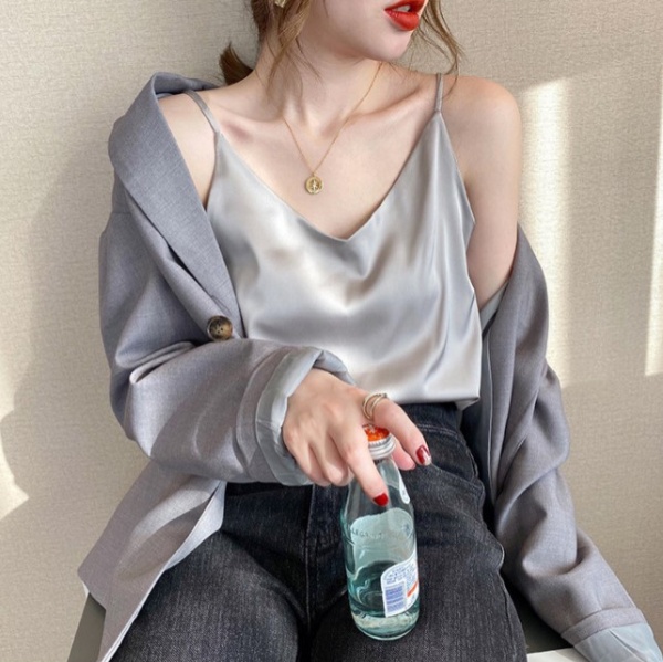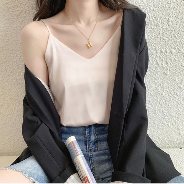 商品属性 [上市年份/季节] 2023年春季 [主要下游销售地区1] 欧美 [主要下游销售地区2] 东南亚 [主面料成分] 聚酯纤维(涤纶) [主面料成分2] 雪纺 [主面料成分2含量] 50%(不含)-70%(含) [主面料成分含量] 30%(不含)-50%(含) [优点] 显瘦 [卖点] 仿真丝 [图案] 纯色 [弹力] 微弹 [是否跨境货源] 是 [款式] 吊带型 [流行元素] 亮丝 [版型] 宽松型 [特点] 内搭 [肩带样式] 不可拆卸 [衣长] 普通款(50cm<衣长≤65cm) [跨境风格类型] 气质优雅 [面料名称] / [风格] 优雅风 [风格类型] 气质通勤