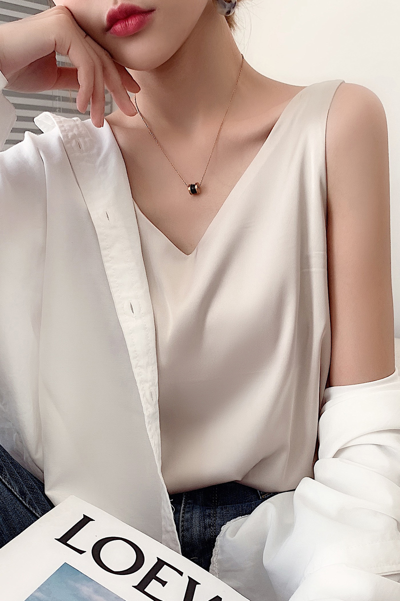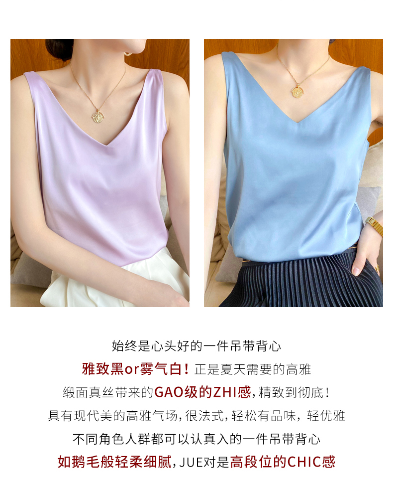 商品属性 [上市年份/季节] 2024年夏季 [主面料成分] 聚酯纤维 [主面料成分含量] 30%以下 [图案] 纯色 [弹力] 高弹 [是否跨境货源] 否 [款式] 吊带型 [流行元素] 蝴蝶结 [版型] 宽松型 [衣长] 普通款(50cm<衣长≤65cm) [面料名称] 其他 [风格] 少女风 [风格类型] 清新甜美