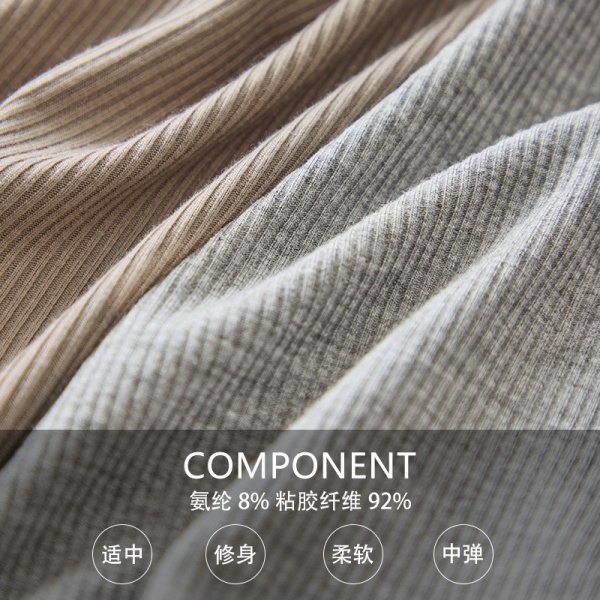 商品属性 [上市年份/季节] 2025年春季 [主面料成分] 粘胶纤维 [主面料成分含量] 90%(含)-95%(不含) [图案] 纯色 [弹力] 中弹 [是否跨境货源] 否 [款式] 套头 [流行元素] 螺纹 [版型] 修身型 [肩带样式] 不可拆卸 [衣长] 普通款(50cm<衣长≤65cm) [面料名称] 粘胶纤维 [风格] 简约风 [风格类型] 日韩休闲