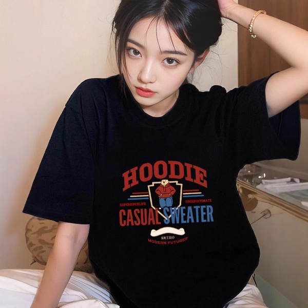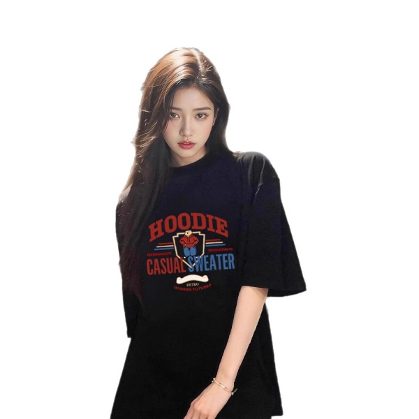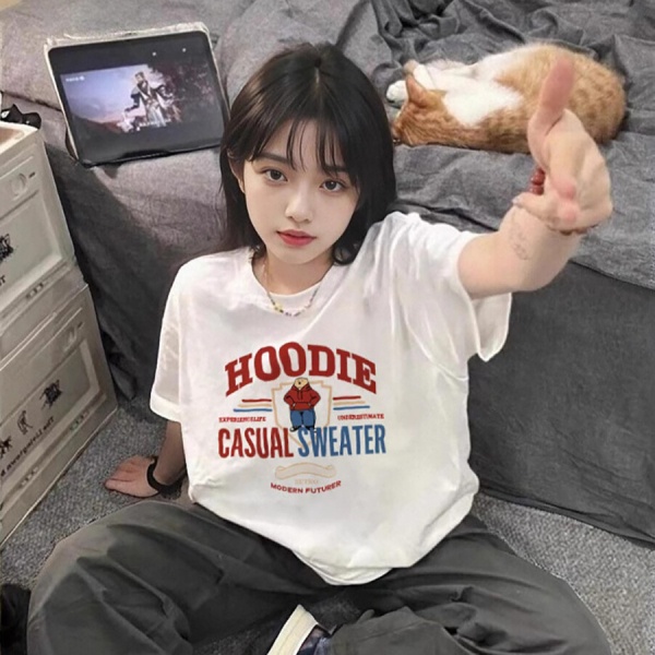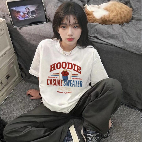 商品属性 [上市年份/季节] 2025年春季 [主面料成分] 棉 [主面料成分2] 棉 [主面料成分2含量] 95%及以上 [主面料成分含量] 95%及以上 [图案] 印花 [工艺] 印花/印染 [是否跨境货源] 否 [款式] 套头 [流行元素] 印花 [版型] 宽松型 [生产商] 深圳市宝安区索妍服装厂 [衣长] 普通款(50cm<衣长≤65cm) [袖型] 常规袖 [袖长] 短袖 [面料名称] 棉 [领型] 圆领 [风格] 韩系风 [风格类型] 日韩休闲