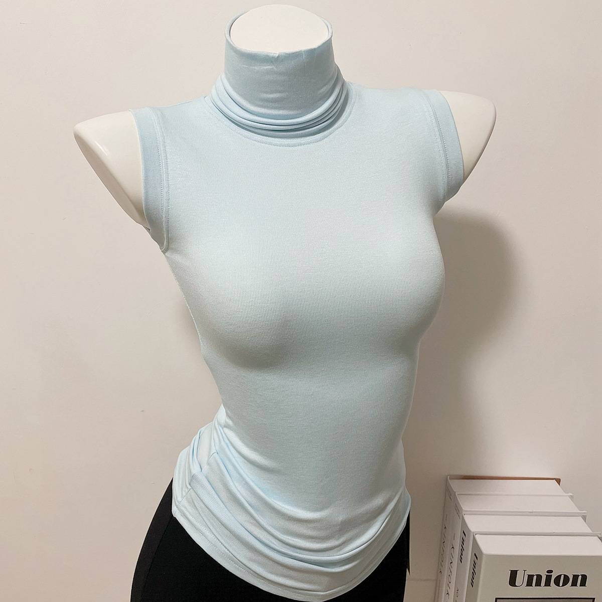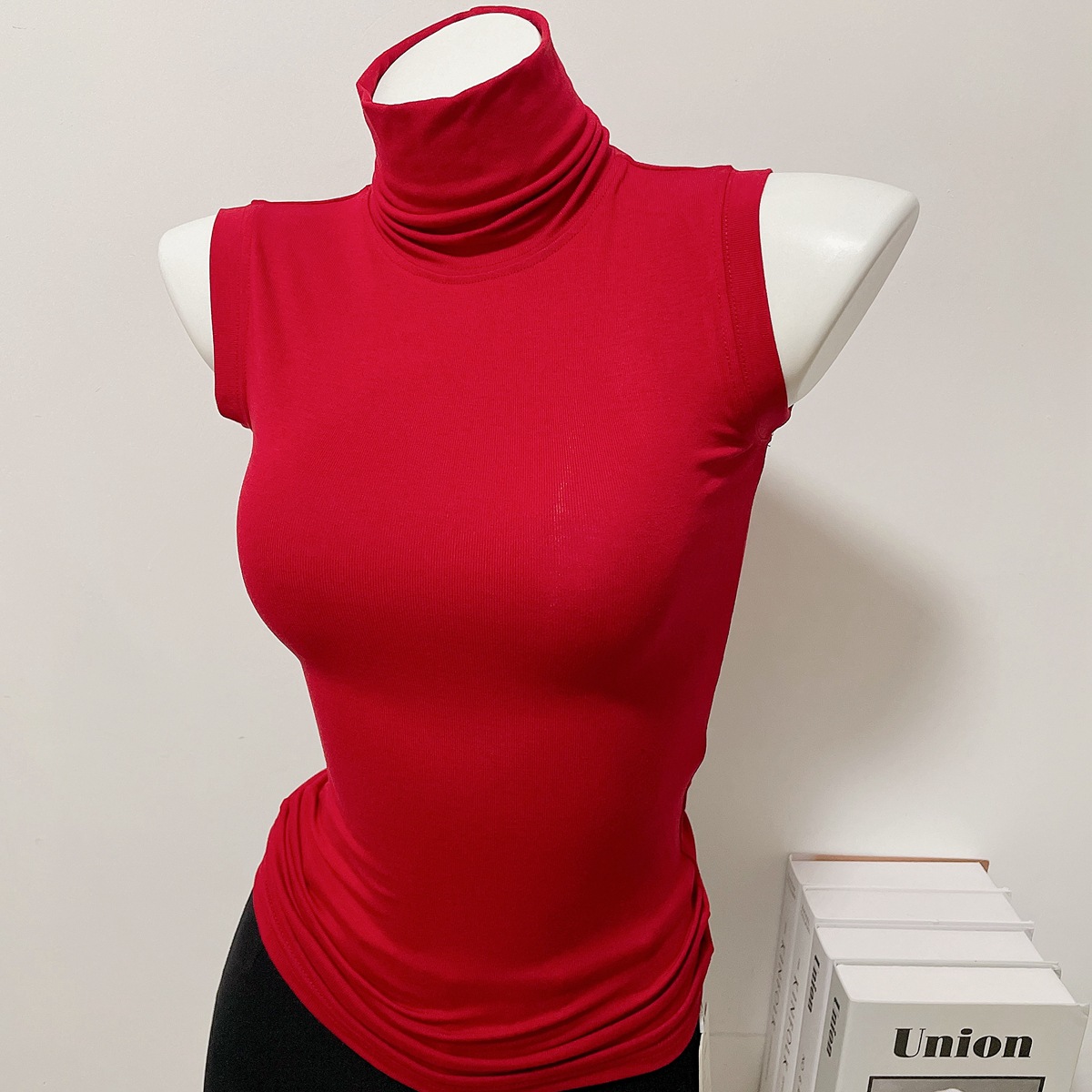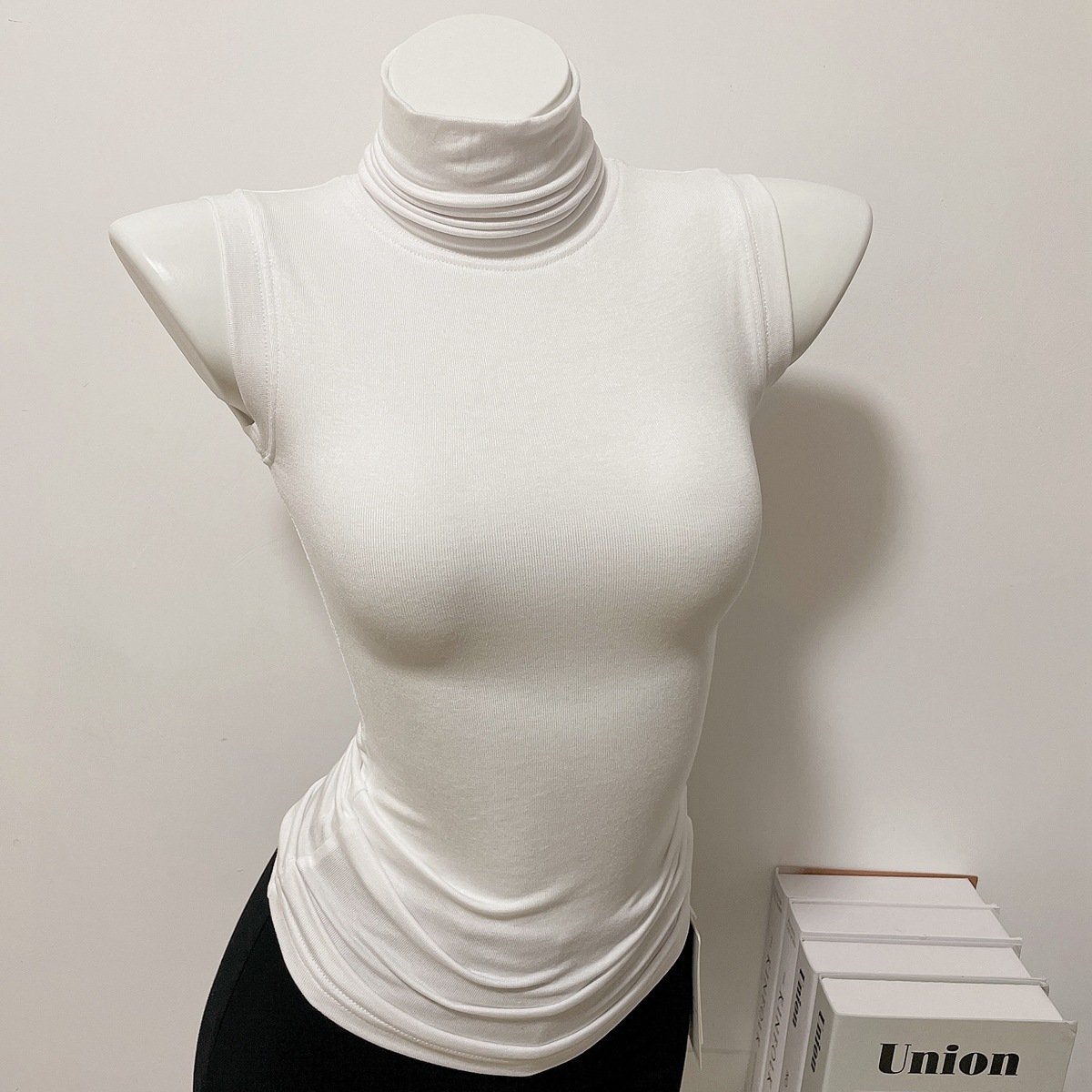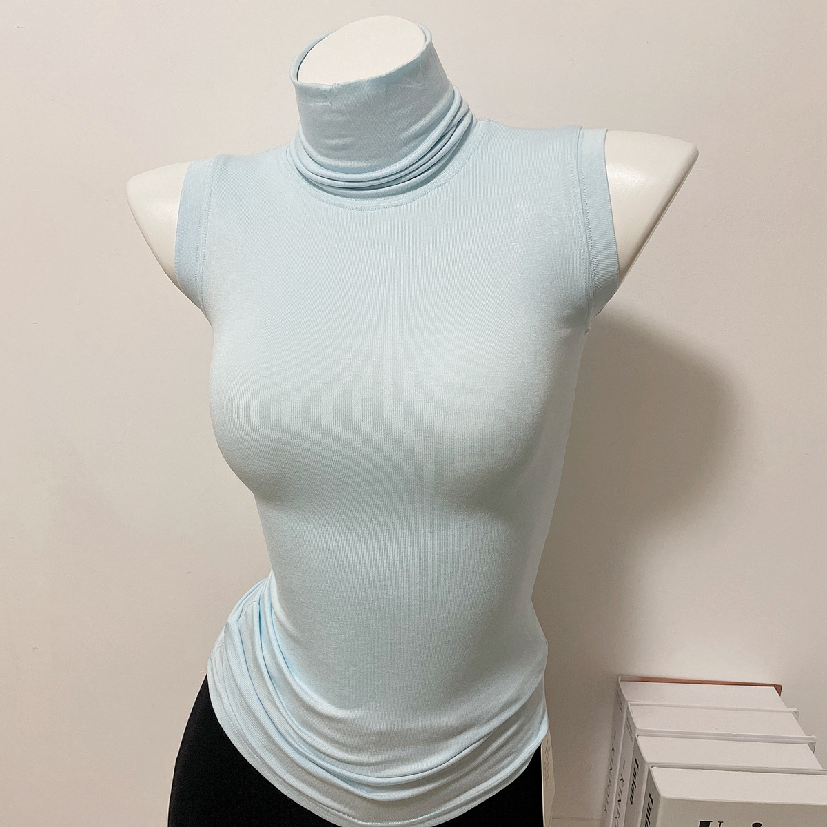 商品属性 [上市年份/季节] 2024年夏季 [主面料成分] 莫代尔纤维 [主面料成分含量] 95%及以上 [是否跨境货源] 否 [版型] 紧身型 [衣长] 普通款(50cm<衣长≤65cm) [袖型] 无袖 [袖长] 无袖 [面料名称] 莫代尔 [领型] 高领 [风格] 纯欲风 [风格类型] 私服名媛