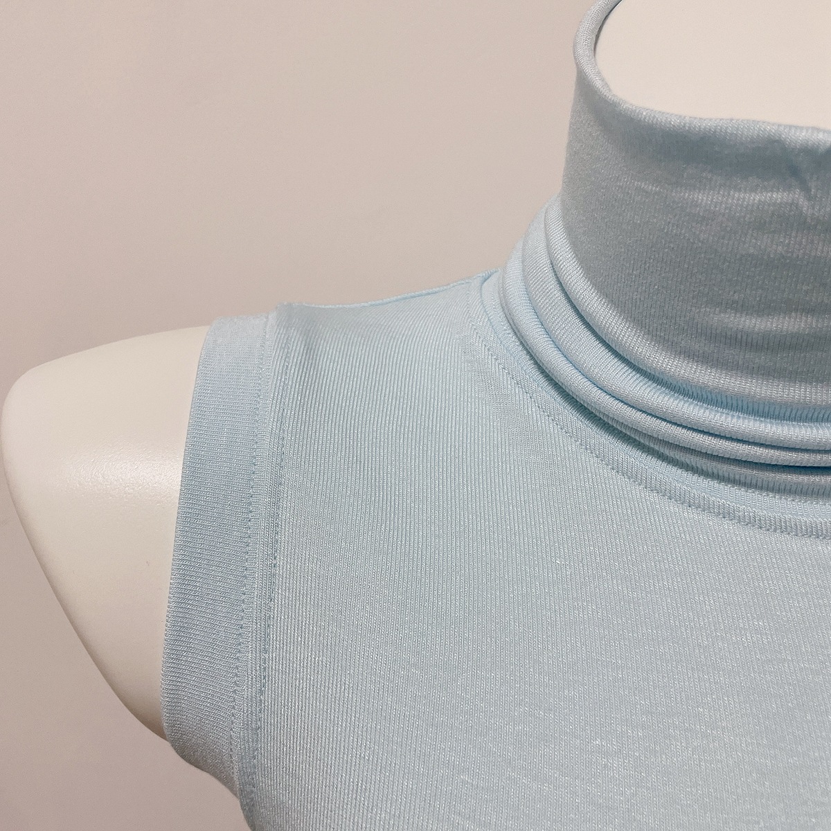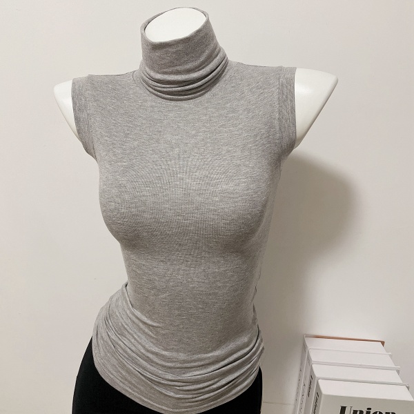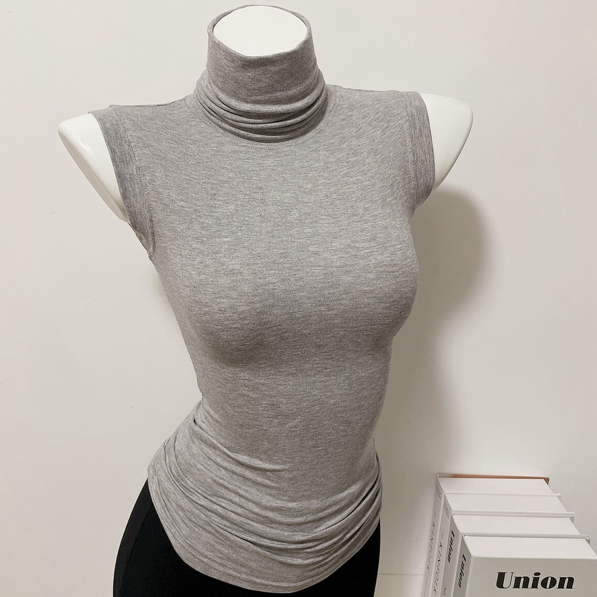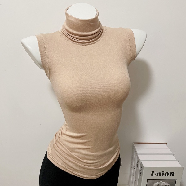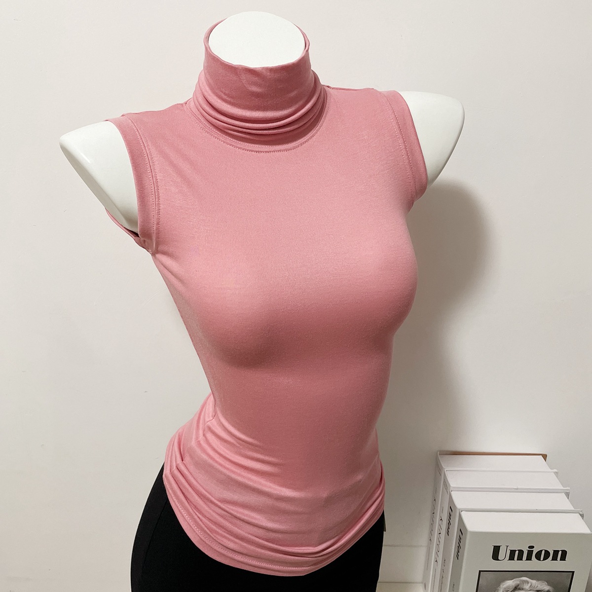 商品属性 [上市年份/季节] 2024年夏季 [主面料成分] 莫代尔纤维 [主面料成分含量] 95%及以上 [是否跨境货源] 否 [版型] 紧身型 [衣长] 普通款(50cm<衣长≤65cm) [袖型] 无袖 [袖长] 无袖 [面料名称] 莫代尔 [领型] 高领 [风格] 纯欲风 [风格类型] 私服名媛