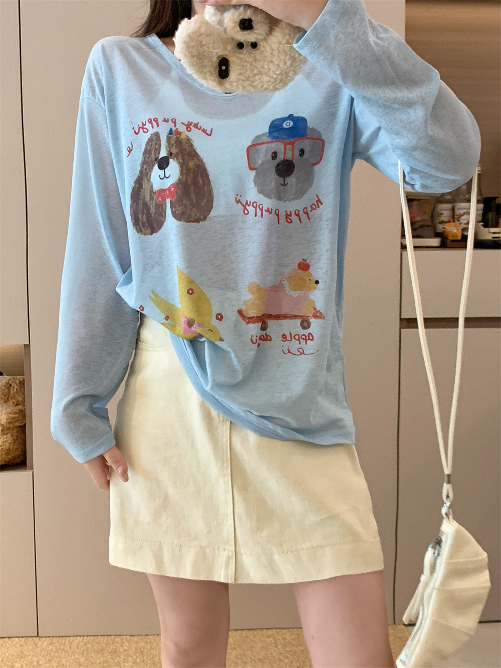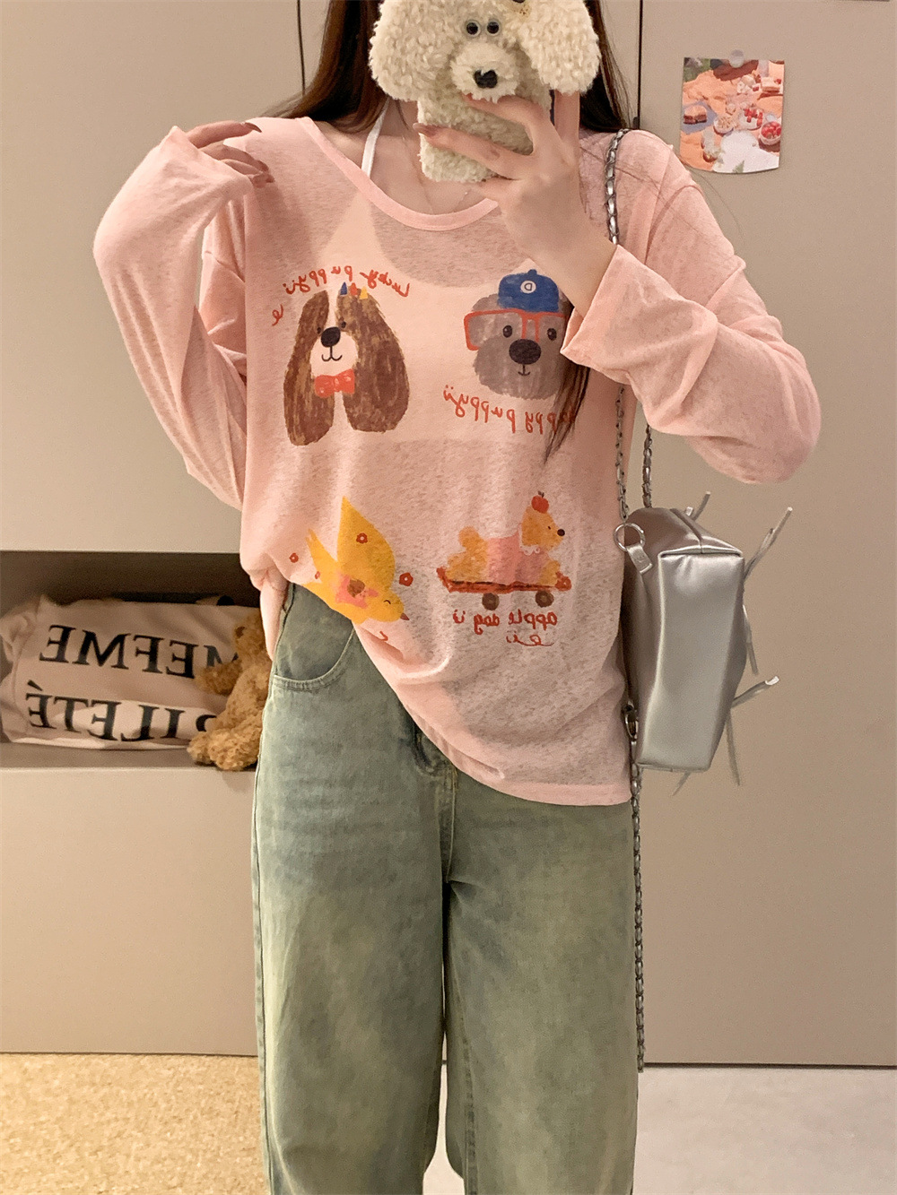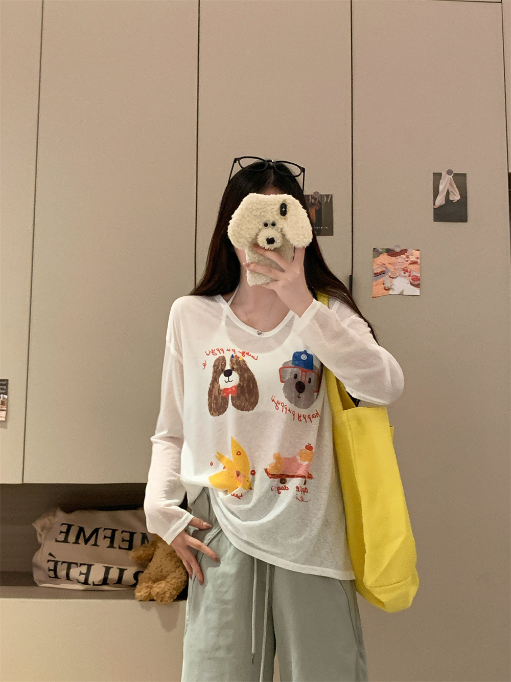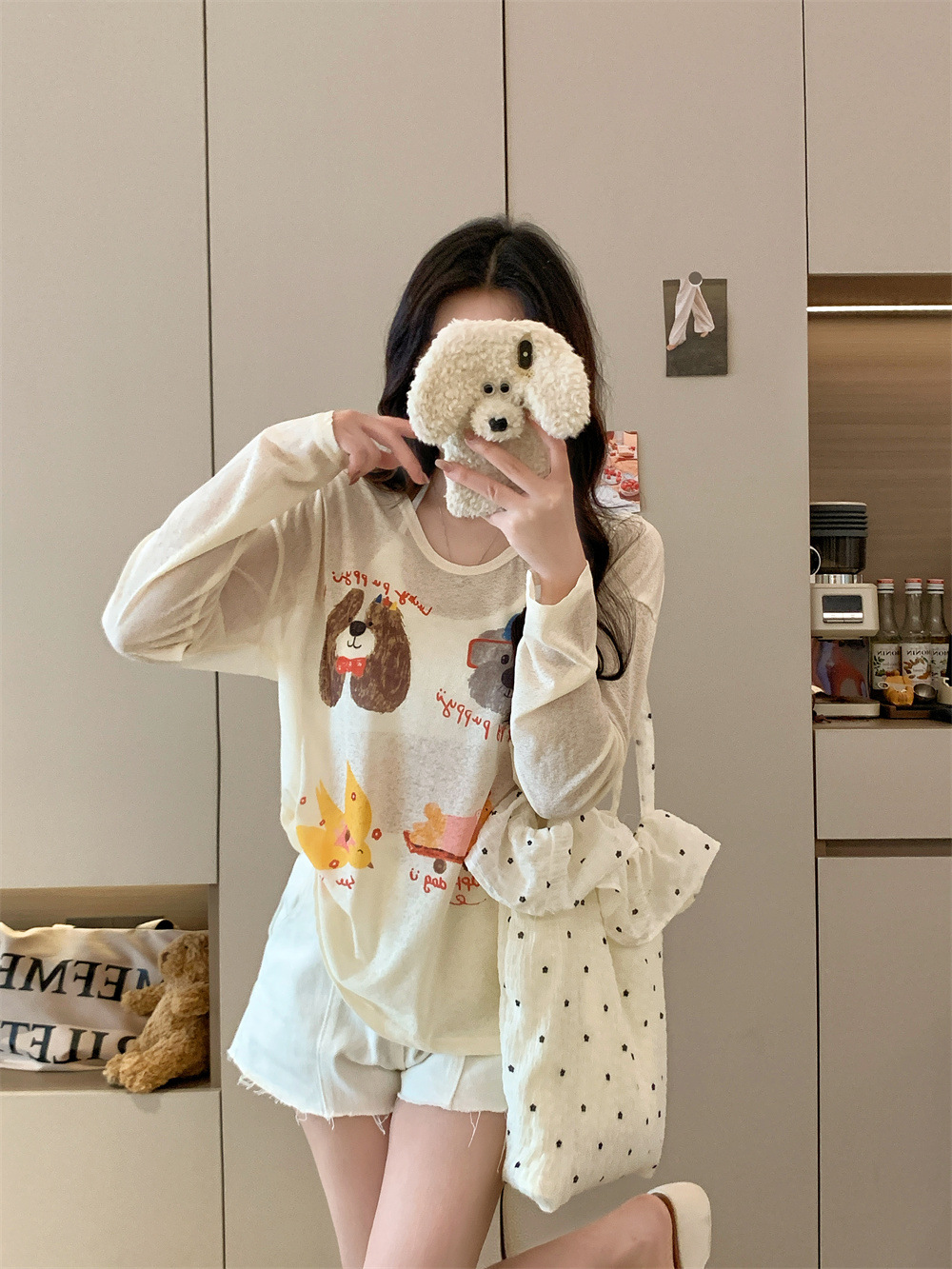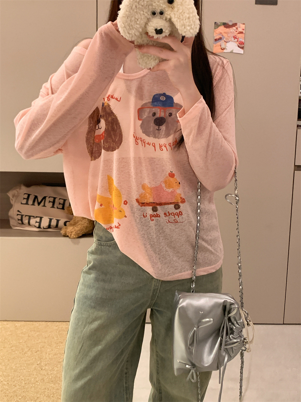 商品属性 [上市年份/季节] 2025夏季 [主面料成分] 涤纶(聚酯纤维) [主面料成分2] 涤纶(聚酯纤维) [主面料成分含量] 95%及以上 [图案] 动物图案 [工艺] 印花 [是否跨境货源] 否 [款式] 套头 [流行元素] 印花 [版型] 宽松型 [衣长] 普通款(50cm<衣长≤65cm) [袖型] 常规袖 [袖长] 长袖 [面料名称] 竹节布 [领型] 圆领 [风格] 甜美风 [风格类型] 清新甜美
