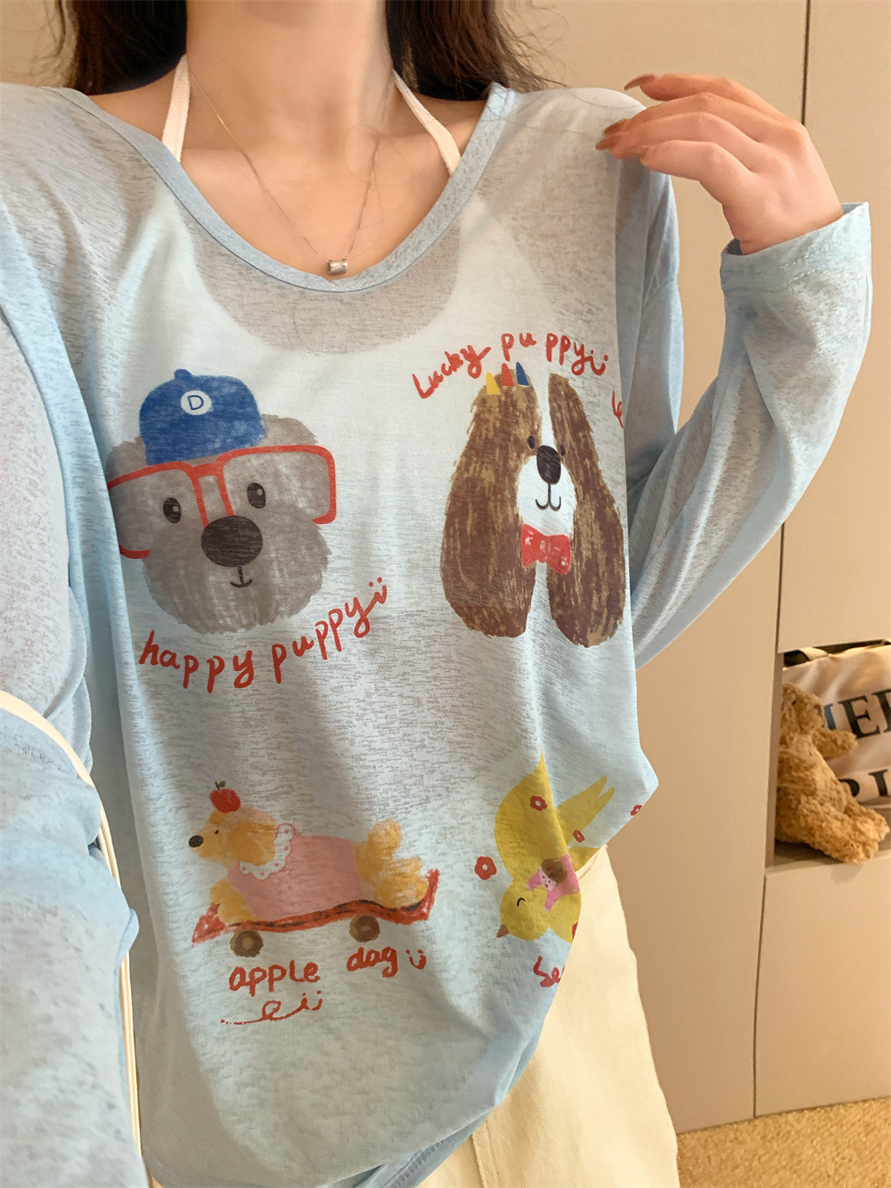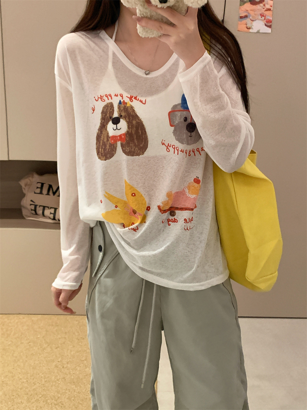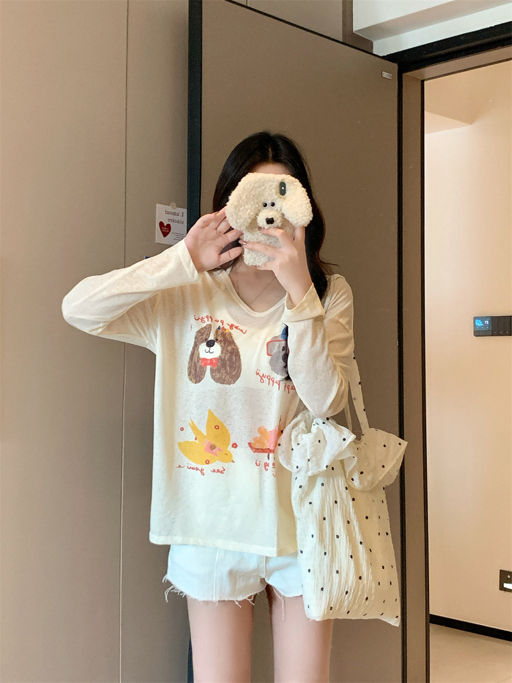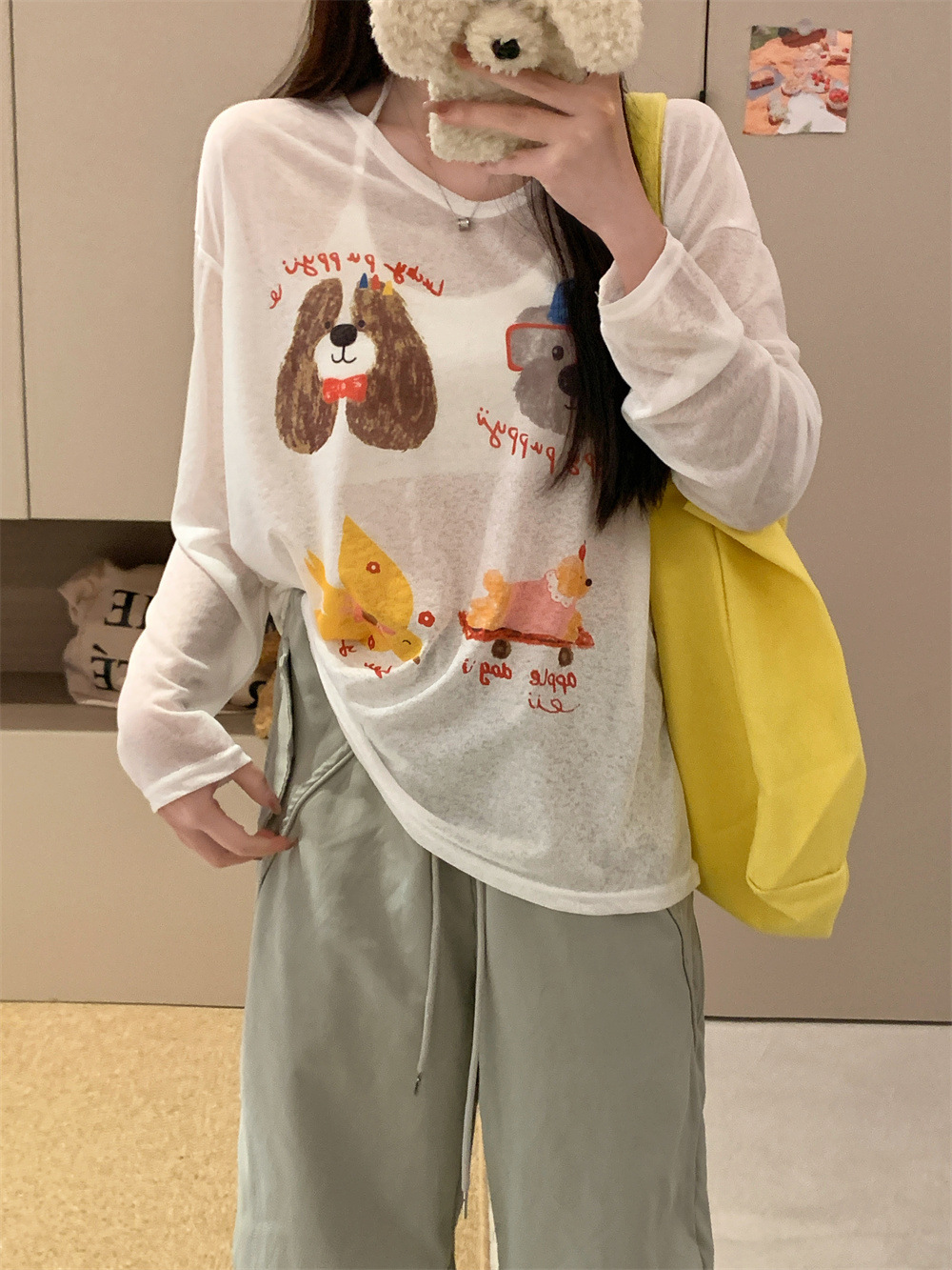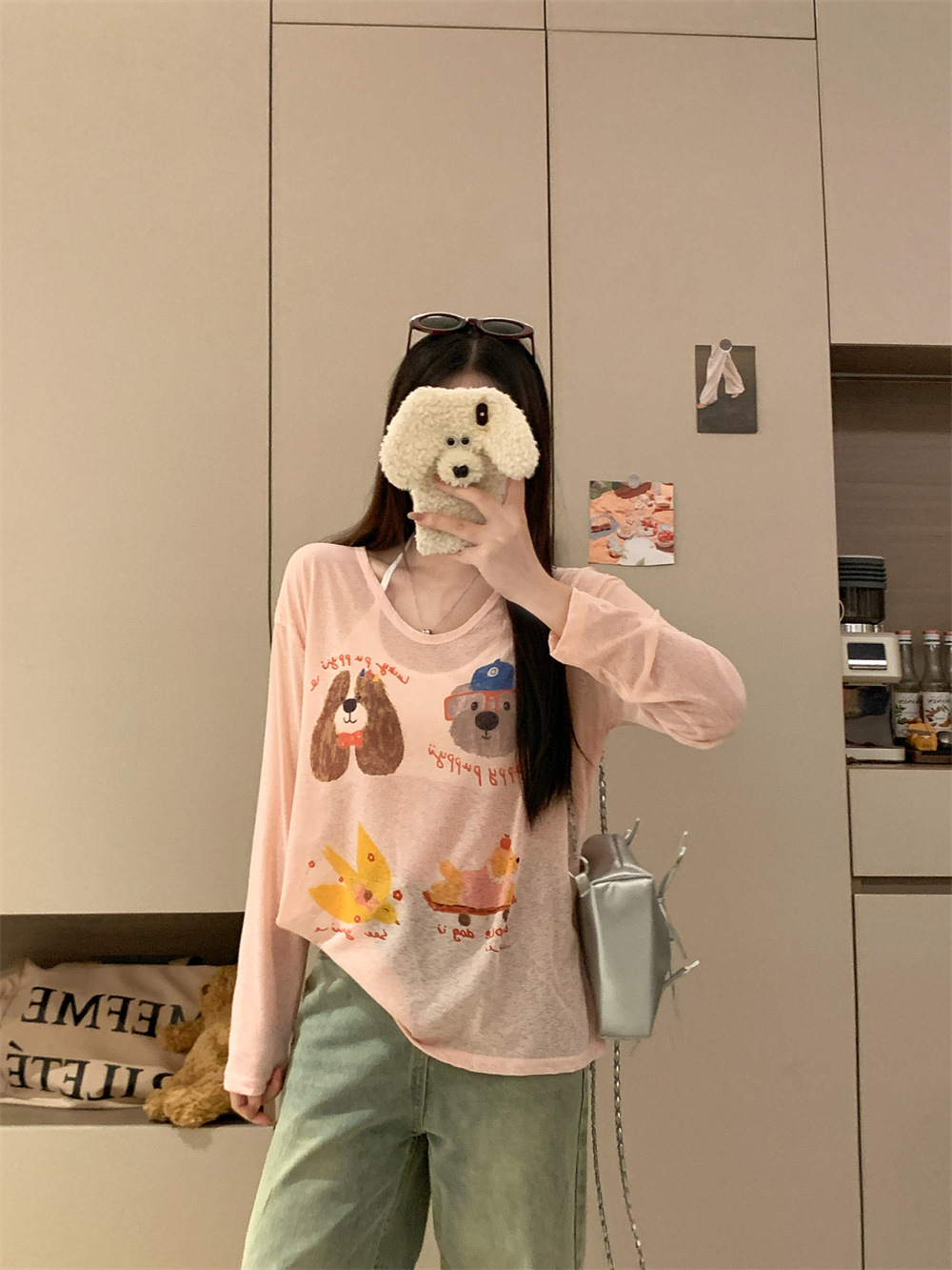 商品属性 [上市年份/季节] 2025夏季 [主面料成分] 涤纶(聚酯纤维) [主面料成分2] 涤纶(聚酯纤维) [主面料成分含量] 95%及以上 [图案] 动物图案 [工艺] 印花 [是否跨境货源] 否 [款式] 套头 [流行元素] 印花 [版型] 宽松型 [衣长] 普通款(50cm<衣长≤65cm) [袖型] 常规袖 [袖长] 长袖 [面料名称] 竹节布 [领型] 圆领 [风格] 甜美风 [风格类型] 清新甜美