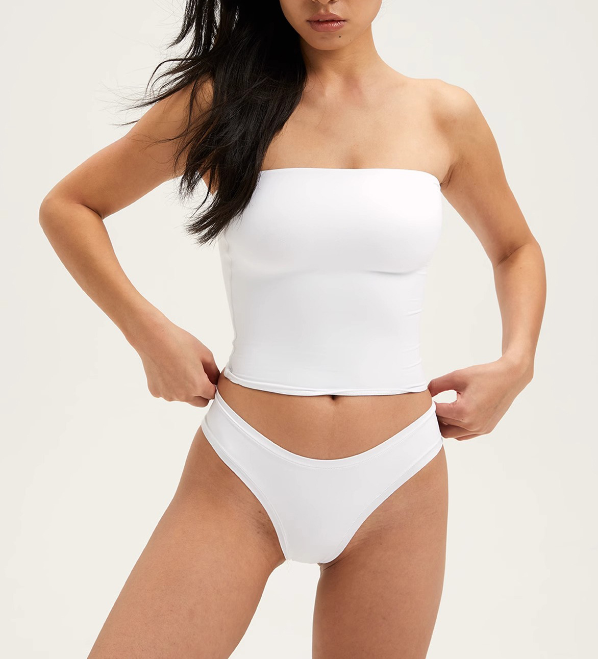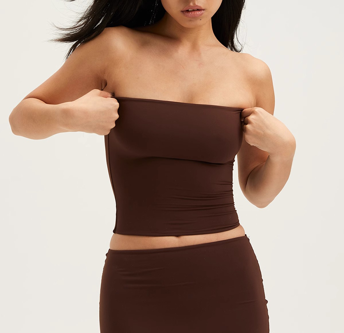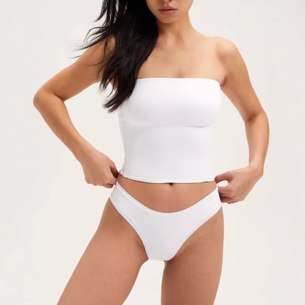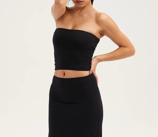 商品属性 [上市年份/季节] 2024年夏季 [主面料成分] 锦纶 [主面料成分2] 氨纶 [主面料成分2含量] 30%以下 [主面料成分含量] 80%(含)-90%(不含) [图案] 纯色 [弹力] 高弹 [是否跨境货源] 否 [款式] 抹胸款 [流行元素] 露背 [版型] 修身型 [肩带样式] 无肩带 [衣长] 超短款(≤40CM) [风格] 欧美风 [风格类型] 街头潮人