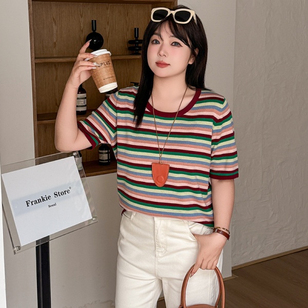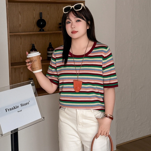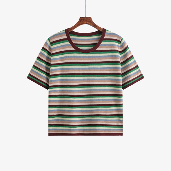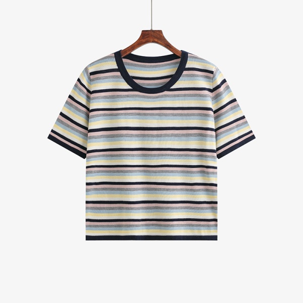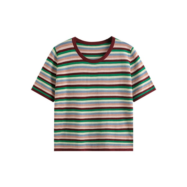 商品属性 [上市年份/季节] 2025夏季 [主要下游销售地区1] 欧美 [主要下游销售地区2] 欧美 [主面料成分] 锦纶 [主面料成分2] 腈纶 [主面料成分2含量] 30%以下 [主面料成分含量] 70%(含)-80%(不含) [图案] 条纹/格子 [工艺] 螺纹 [是否跨境货源] 是 [款式] 套头 [流行元素] 螺纹 [版型] 常规 [衣长] 普通款(50cm<衣长≤65cm) [袖型] 常规袖 [袖长] 五分袖 [跨境风格类型] 甜美清新 [面料名称] 48支亲肤澳毛绒 [领型] 圆领 [风格类型] 清新甜美