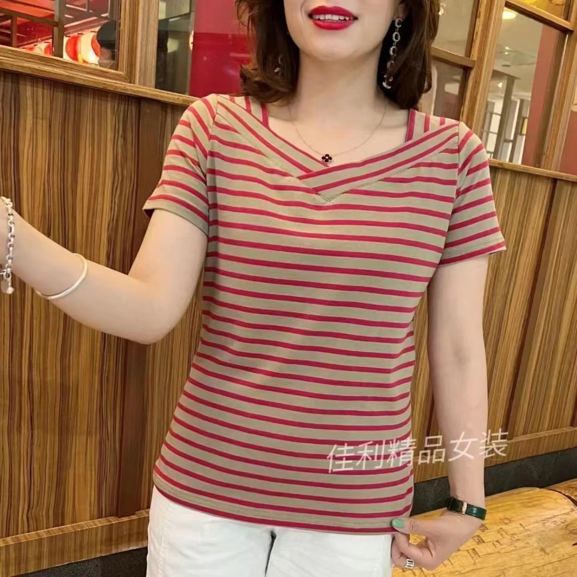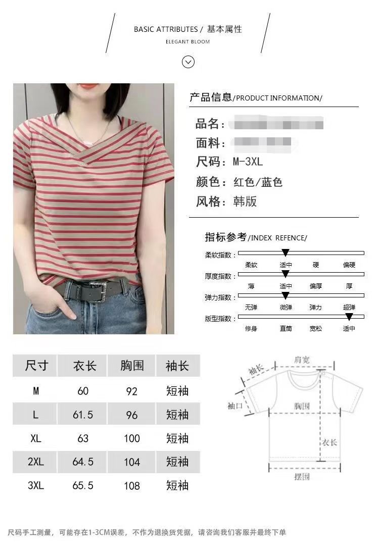 商品属性 [上市年份/季节] 2023年夏季 [主面料成分] 氨纶 [主面料成分含量] 30%以下 [是否跨境货源] 否 [版型] 宽松型 [袖型] 短袖 [袖长] 短袖 [面料名称] 雪尼尔 [领型] V领 [风格] 御姐风 [风格类型] 私服名媛