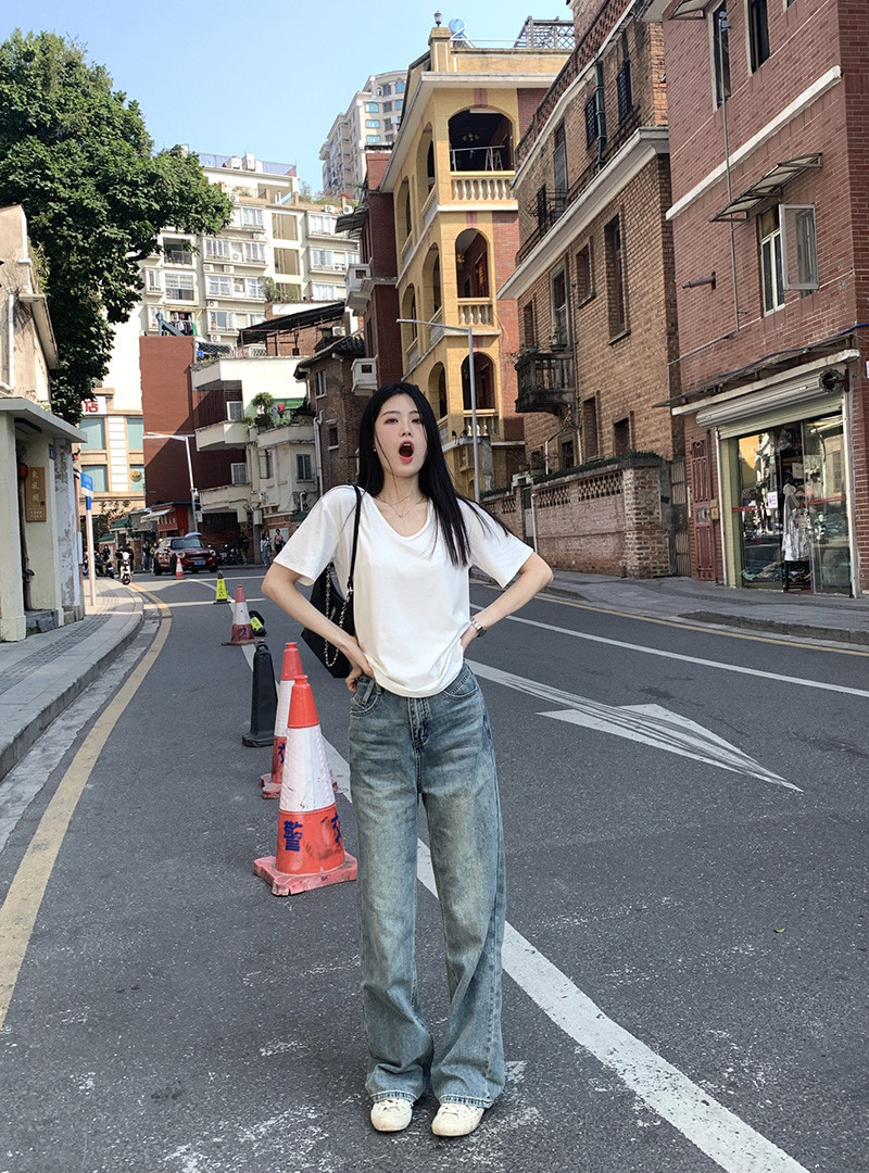 商品属性 [上市年份/季节] 2023年夏季 [主要下游销售地区1] 欧美 [主要下游销售地区2] 欧美 [主面料成分] 棉 [主面料成分含量] 95%及以上 [图案] 纯色 [是否跨境货源] 是 [款式] 套头 [流行元素] 纯色 [版型] 宽松型 [衣长] 普通款(50cm<衣长≤65cm) [袖型] 常规袖 [袖长] 短袖 [跨境风格类型] 舒适休闲 [面料名称] 棉 [领型] 圆领 [风格] 通勤风 [风格类型] 气质通勤