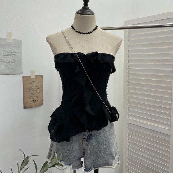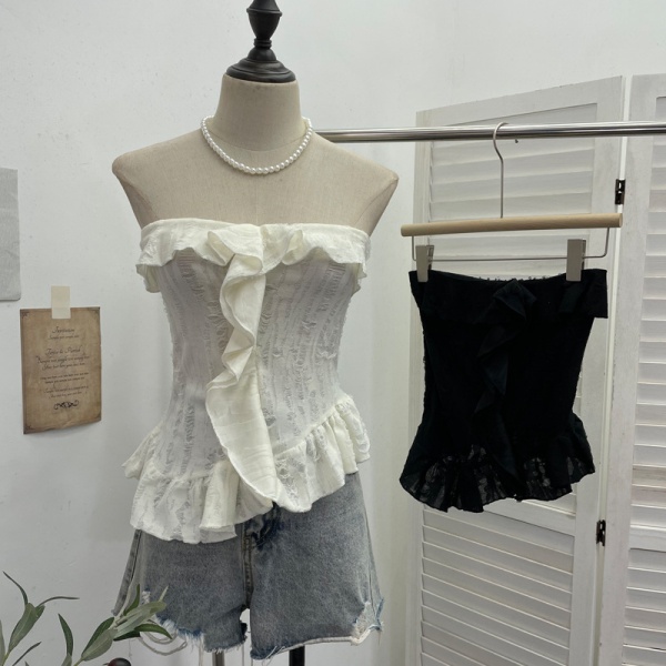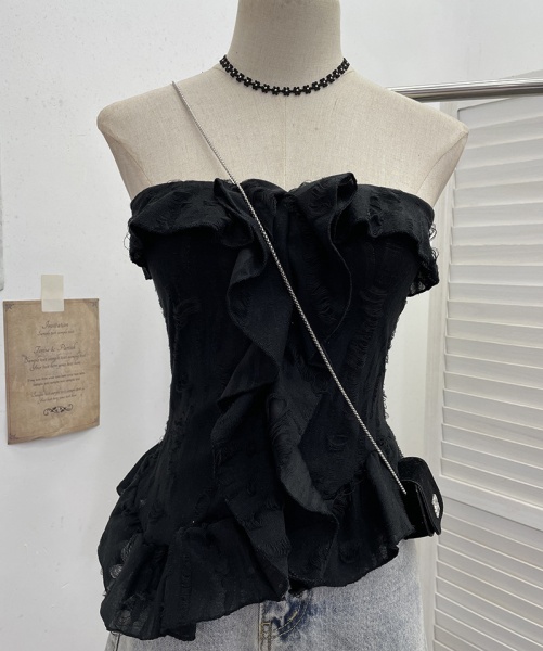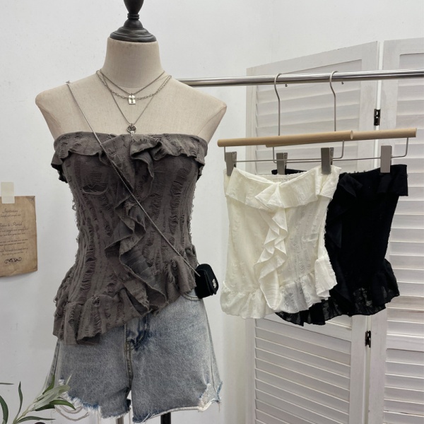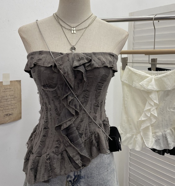 商品属性 [上市年份/季节] 2025夏季 [主要下游销售地区1] 欧美 [主要下游销售地区2] 东南亚 [主面料成分] 涤纶(聚酯纤维) [主面料成分含量] 30%(含)-50%(不含) [图案] 纯色 [弹力] 中弹 [是否跨境货源] 是 [款式] 套头 [流行元素] 做旧 [版型] 不规则型 [肩带样式] 无肩带 [衣长] 短款(40cm<衣长≤50cm) [跨境风格类型] 性感辣妹 [面料名称] 涤纶 [风格] 性感风 [风格类型] 私服名媛