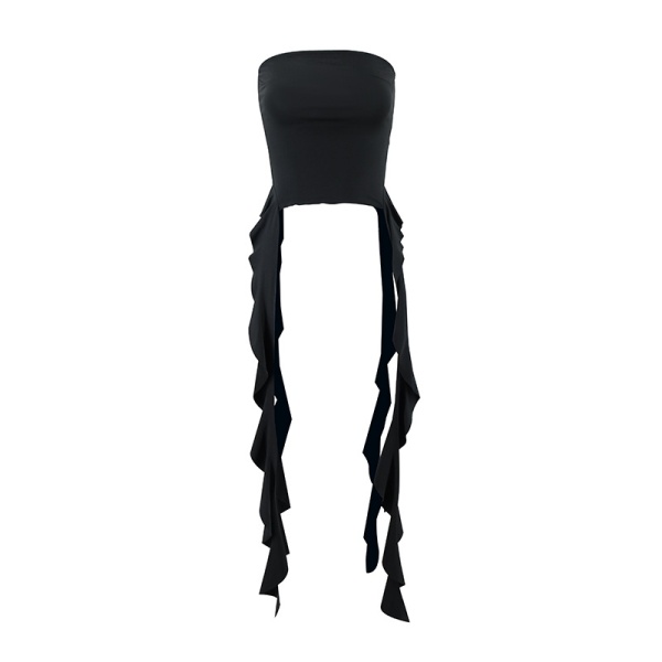 商品属性 [上市年份/季节] 2023年夏季 [主要下游销售地区1] 欧美 [主要下游销售地区2] 其他 [主面料成分] 涤纶(聚酯纤维) [主面料成分2] 氨纶 [主面料成分2含量] 30%以下 [主面料成分含量] 70%(含)-80%(不含) [图案] 纯色 [弹力] 中弹 [是否跨境货源] 是 [款式] 套头 [流行元素] 荷叶边 [版型] 修身型 [肩带样式] 无肩带 [衣长] 超短款(≤40CM) [跨境风格类型] null [面料名称] 牛奶丝 [风格] 欧美风 [风格类型] 街头潮人