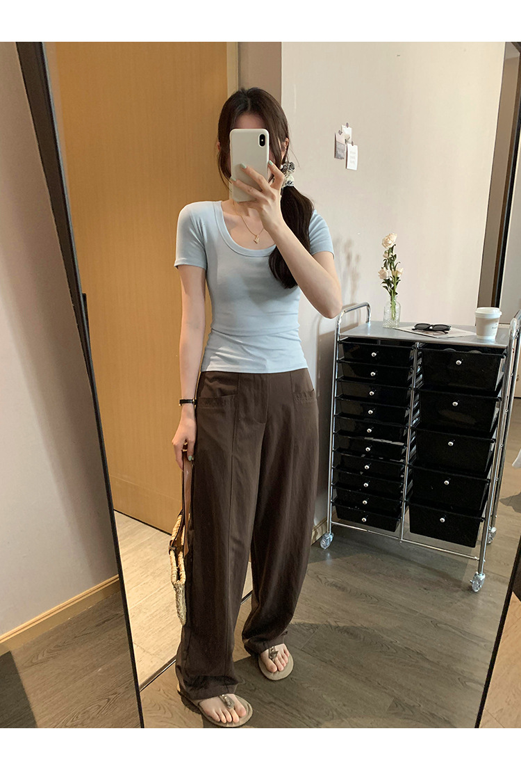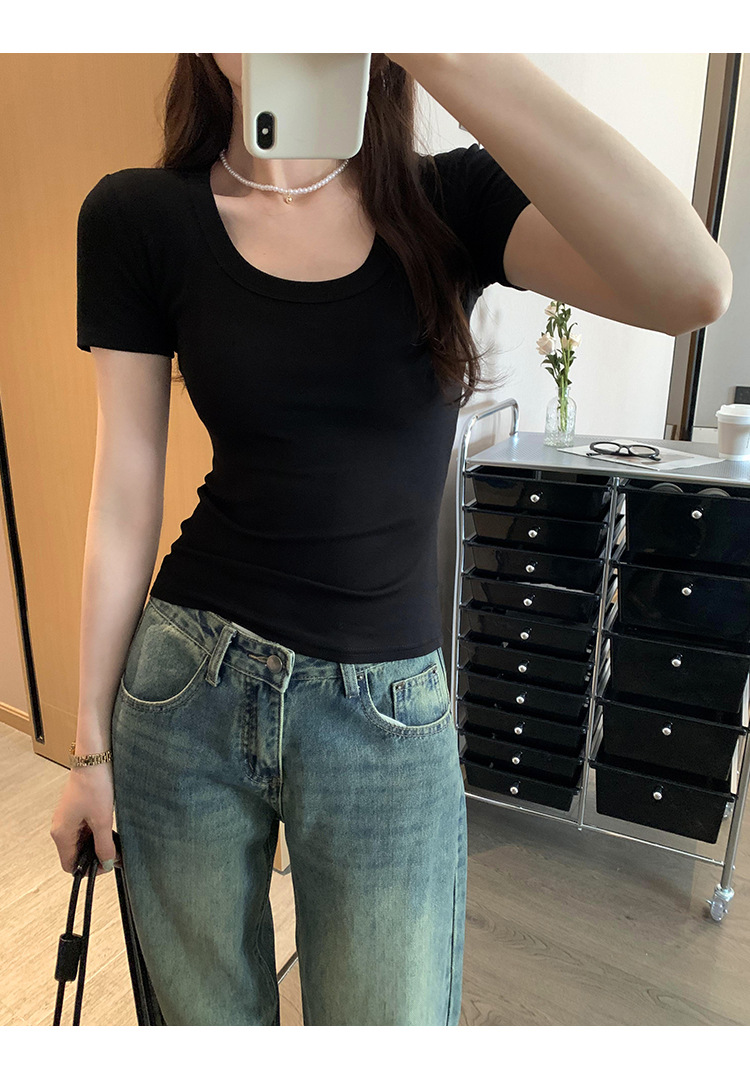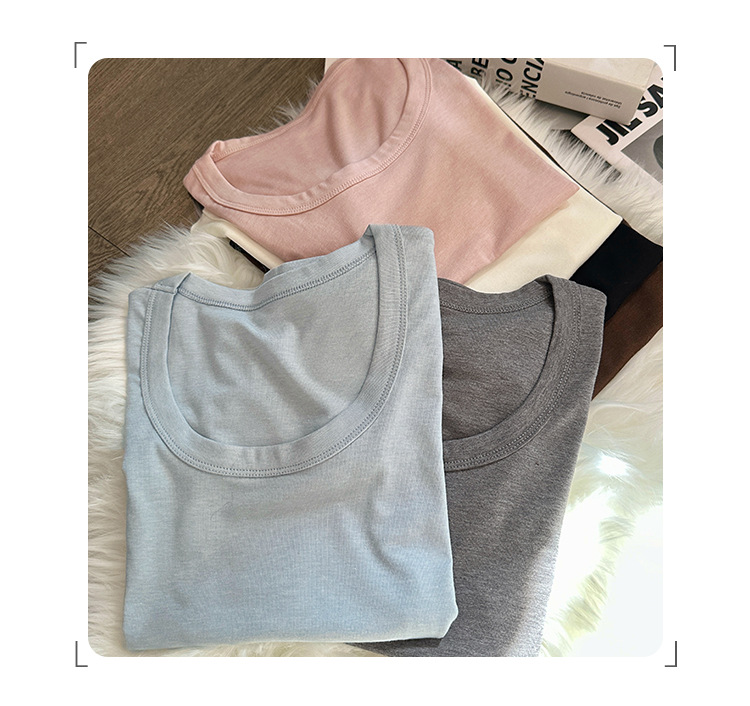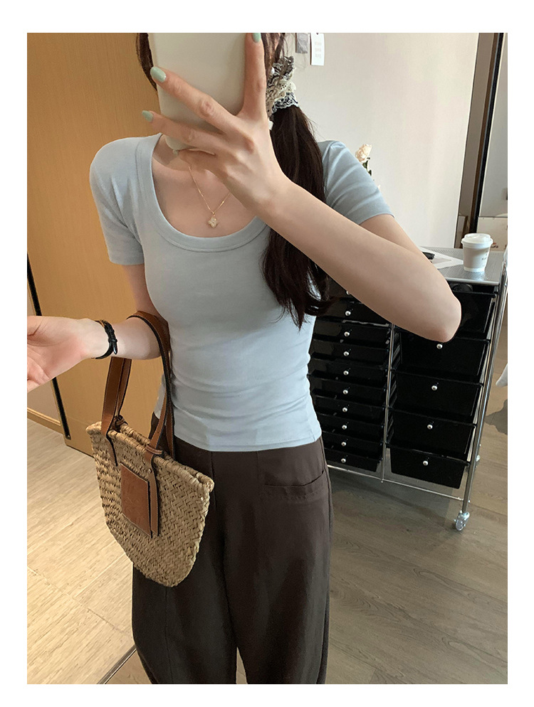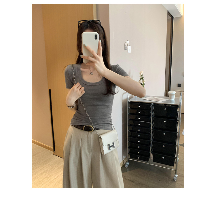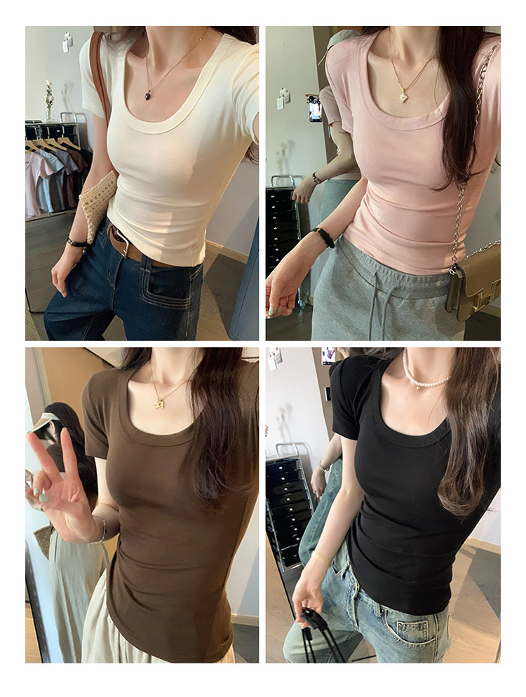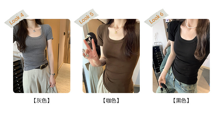 商品属性 [上市年份/季节] 2025夏季 [主要下游销售地区1] 欧美 [主要下游销售地区2] 东南亚 [主面料成分] 粘胶纤维 [主面料成分含量] 30%(含)-50%(不含) [图案] 纯色 [工艺] 拼接 [是否跨境货源] 是 [款式] 套头 [流行元素] 青春 [版型] 修身型 [衣长] 普通款(50cm<衣长≤65cm) [袖型] 常规袖 [袖长] 短袖 [跨境风格类型] 气质优雅 [面料名称] 粘胶纤维 [领型] U字领 [风格] 通勤风 [风格类型] 气质通勤