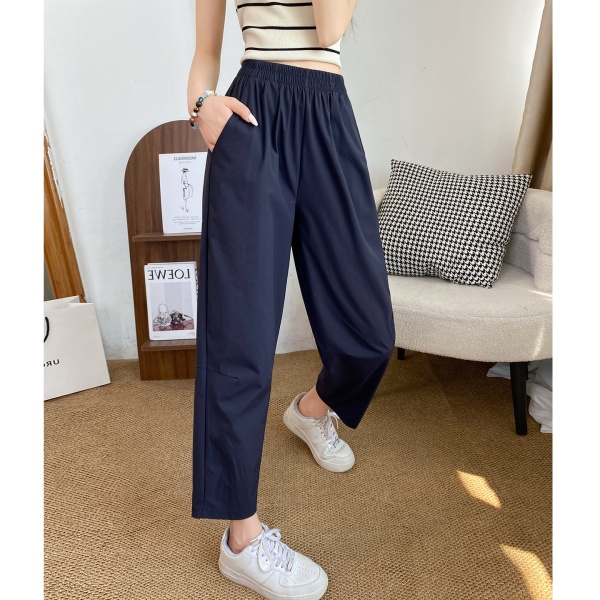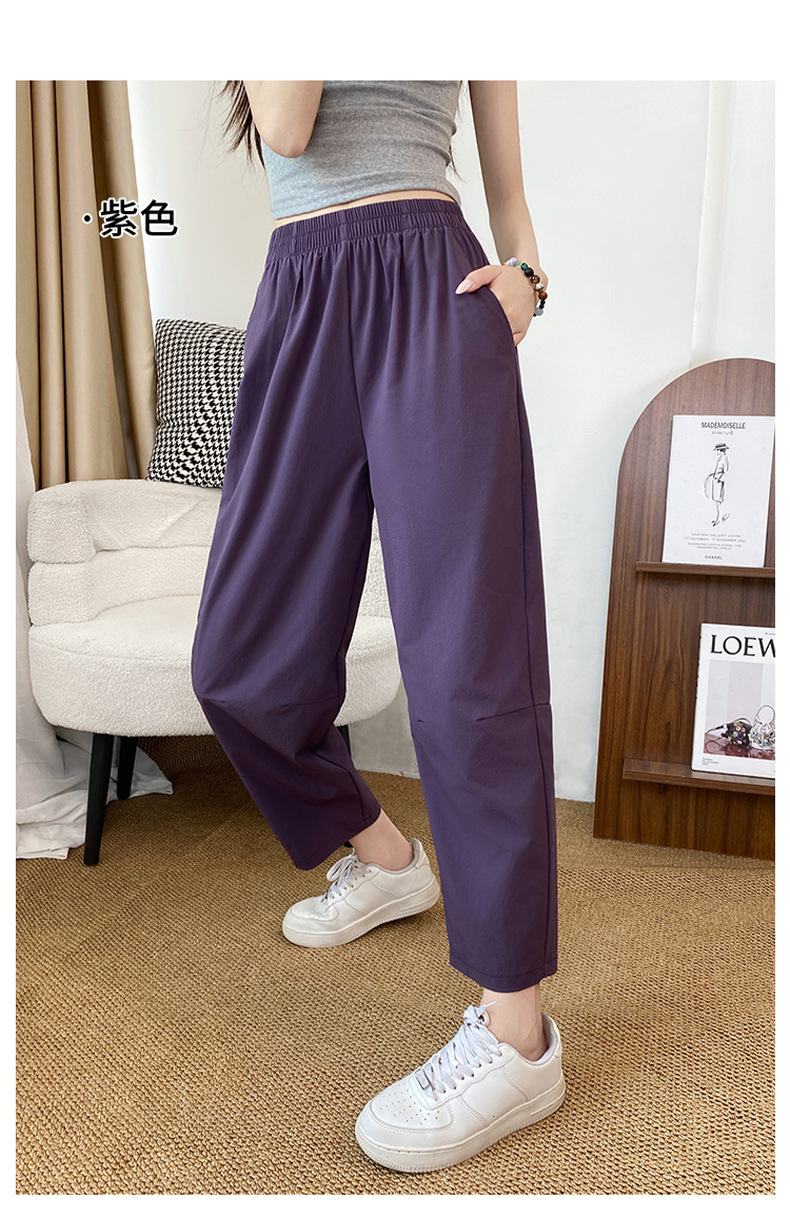 商品属性 [上市年份/季节] 2025夏季 [主要下游销售地区1] 东南亚 [主要下游销售地区2] 东南亚 [主面料成分] 锦纶 [主面料成分2] 氨纶 [主面料成分2含量] 30%以下 [主面料成分含量] 80%(含)-90%(不含) [厚薄] 薄 [工艺] 免烫处理 [弹力] 微弹 [是否跨境货源] 是 [款式] 基本款 [流行元素] 拼接 [腰型] 高腰 [裤型] 小脚裤 [裤长] 九分裤 [跨境风格类型] 舒适休闲 [面料名称] 锦纶 [风格] 学院风 [风格类型] 清新甜美