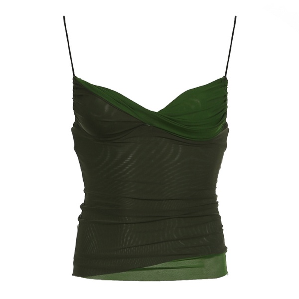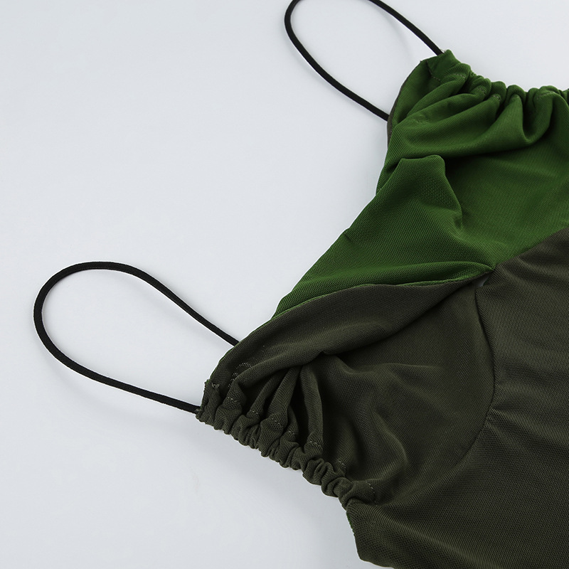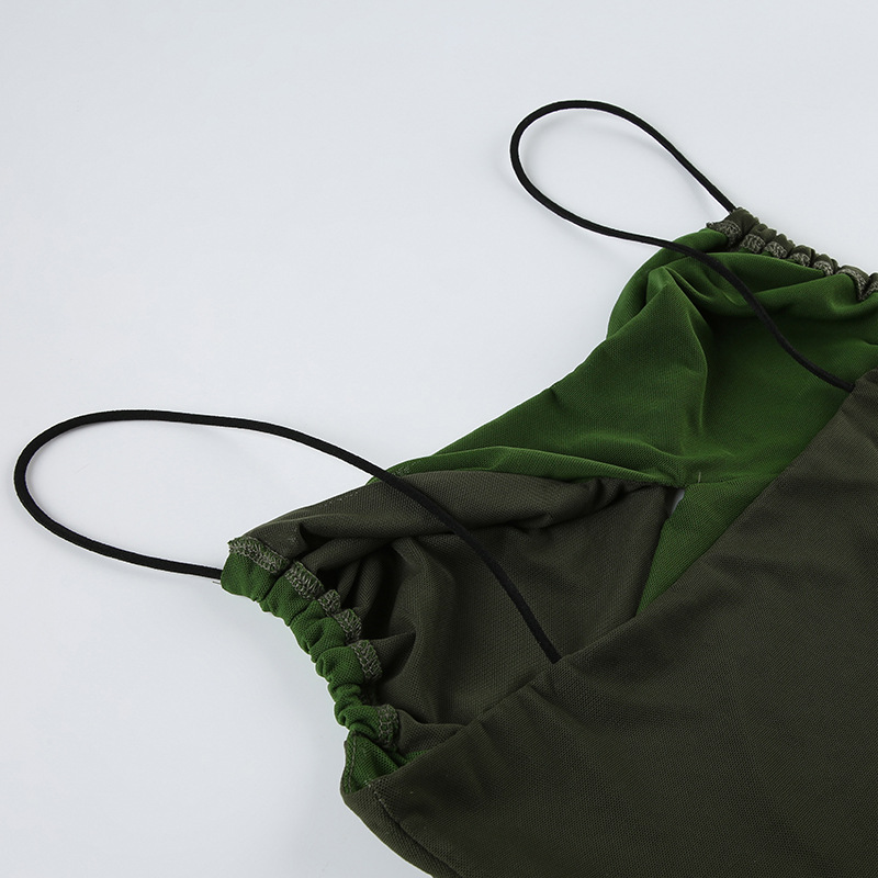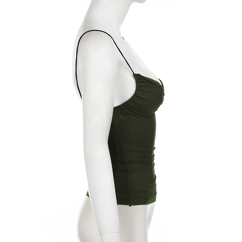 商品属性 [上市年份/季节] 2024年夏季 [主要下游销售地区1] 欧美 [主要下游销售地区2] 中东 [主面料成分] 聚酯纤维 [主面料成分2] 氨纶 [主面料成分2含量] 30%以下 [主面料成分含量] 95%及以上 [图案] 纯色 [弹力] 微弹 [是否跨境货源] 是 [款式] 吊带款 [流行元素] 扭结 镂空 [版型] 修身型 [肩带样式] 单根式 [衣长] 短款(40cm<衣长≤50cm) [跨境风格类型] 性感辣妹 [面料名称] 网纱 [风格] 甜辣风 [风格类型] 私服名媛