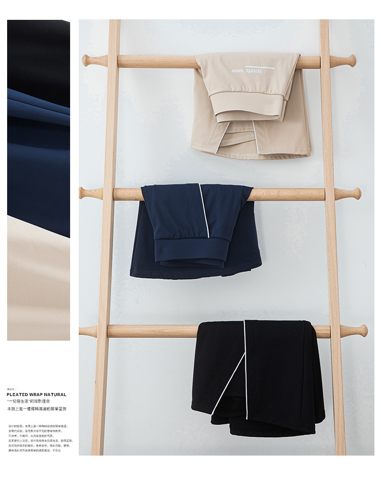 商品属性 [上市年份/季节] 2024年夏季 [主面料成分] 锦纶 [主面料成分2] 氨纶 [主面料成分2含量] 30%以下 [主面料成分含量] 70%(含)-80%(不含) [厚薄] 薄 [工艺] 拼贴/拼接 [弹力] 高弹 [是否跨境货源] 否 [款式] 裙裤 [流行元素] 口袋 [腰型] 高腰 [裤型] 宽松型 [裤长] 五分裤 [面料名称] 锦纶 [风格] 简约风 [风格类型] 日韩休闲