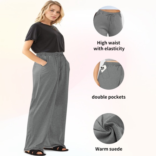 商品属性 [上市年份/季节] 2025夏季 [主要下游销售地区1] 欧美 [主要下游销售地区2] 欧美 [主面料成分] 涤纶(聚酯纤维) [主面料成分含量] 80%(含)-90%(不含) [产品1] 大码慕斯暖绒高腰抽绳斜插袋阔腿裤 [产品2] 欧美大码口袋阔腿裤 [厚薄] 厚 [工艺] 拼贴/拼接 [弹力] 高弹 [是否跨境货源] 是 [款式] 直筒裤 [流行元素] 口袋 [腰型] 高腰 [裤型] 阔腿 [裤长] 长裤 [跨境风格类型] 舒适休闲 [面料名称] 牛奶丝 [风格] 休闲风 [风格类型] 日韩休闲